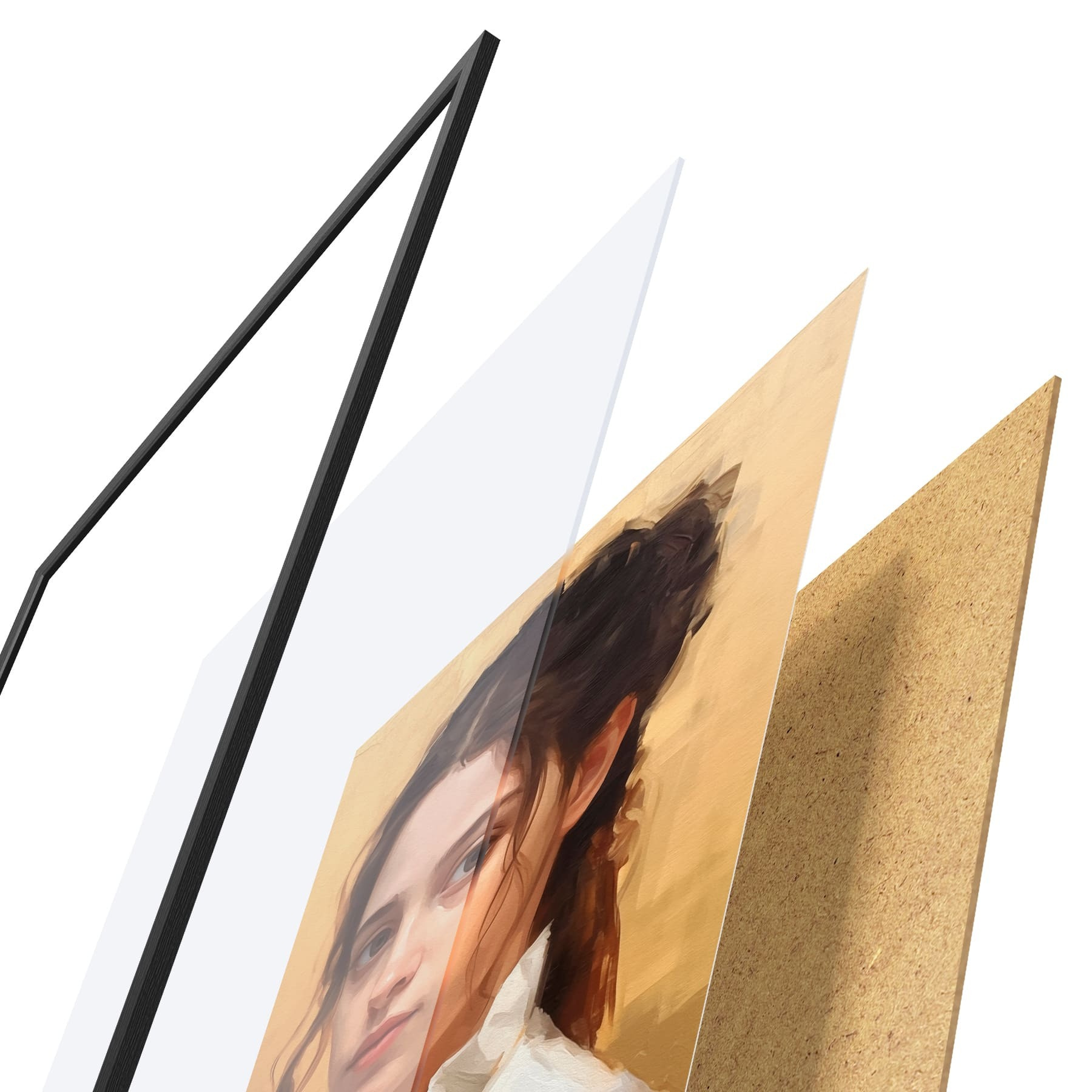 Plakāts sastāv no rāmja, pleksstikla, iespiestā attēla un skaidu plātnes pamatnes. Plakātu var uzreiz piekarināt pie sienas, pateicoties aizmugurē esošajiem stiprinājumiem.