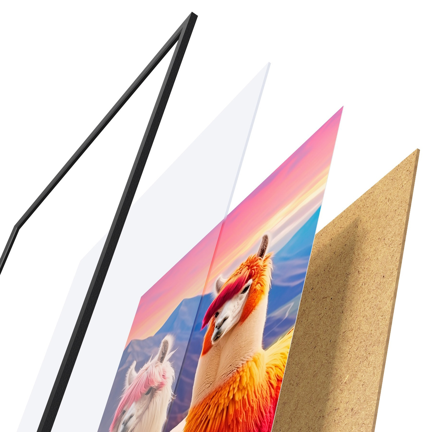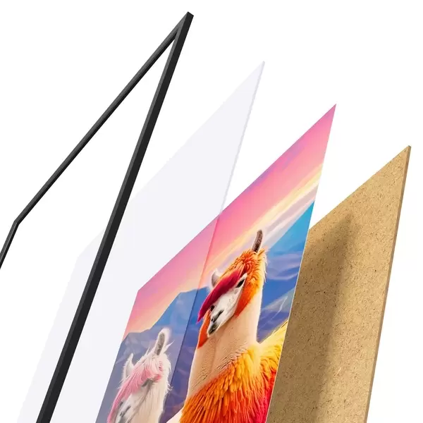 Plakāts sastāv no rāmja, pleksstikla, iespiestā attēla un skaidu plātnes pamatnes. Plakātu var uzreiz piekarināt pie sienas, pateicoties aizmugurē esošajiem stiprinājumiem.