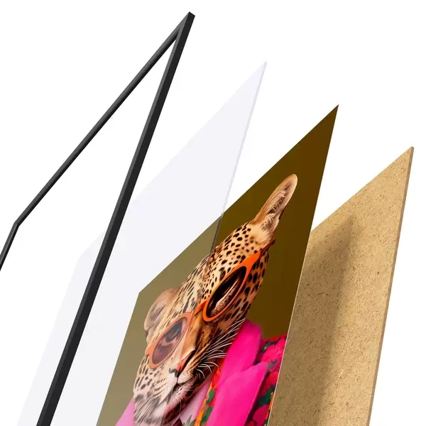 Plakāts sastāv no rāmja, pleksstikla, iespiestā attēla un skaidu plātnes pamatnes. Plakātu var uzreiz piekarināt pie sienas, pateicoties aizmugurē esošajiem stiprinājumiem.