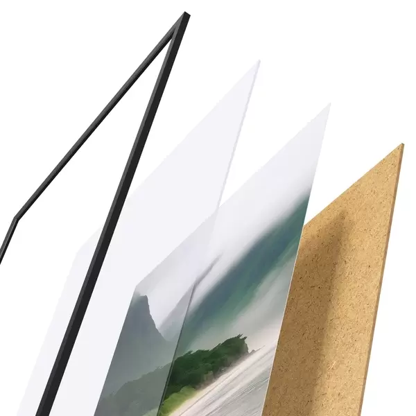 Plakāts sastāv no rāmja, pleksstikla, iespiestā attēla un skaidu plātnes pamatnes. Plakātu var uzreiz piekarināt pie sienas, pateicoties aizmugurē esošajiem stiprinājumiem.