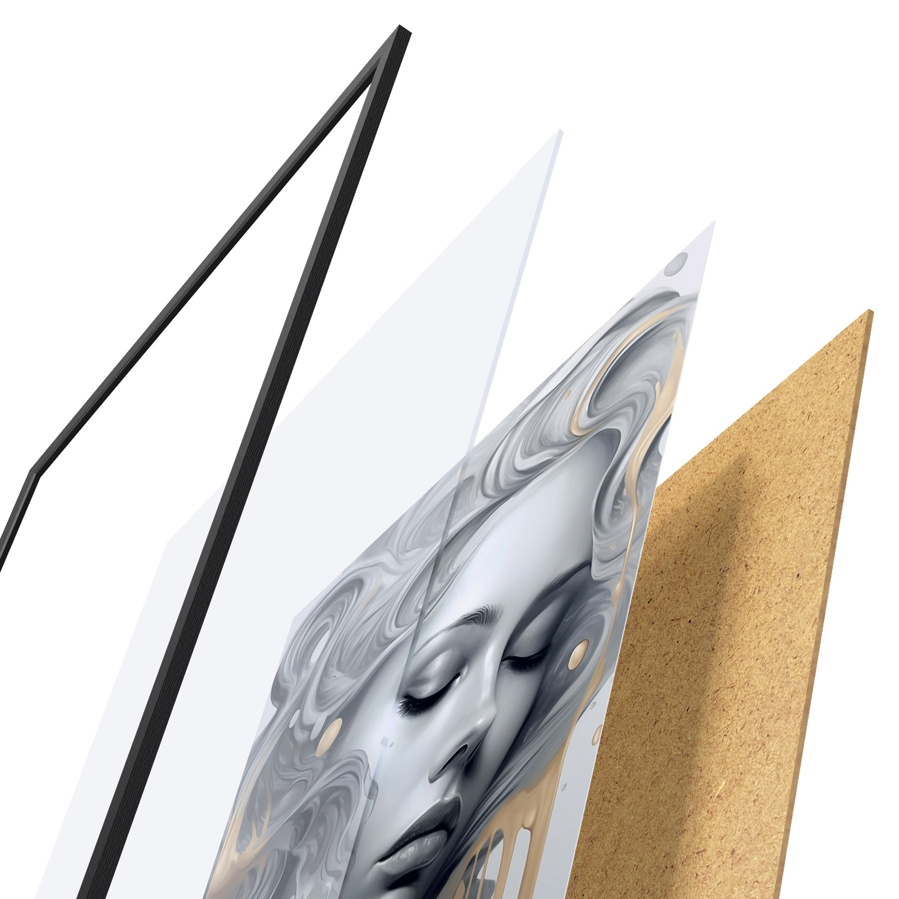 Plakāts sastāv no rāmja, pleksstikla, iespiestā attēla un skaidu plātnes pamatnes. Plakātu var uzreiz piekarināt pie sienas, pateicoties aizmugurē esošajiem stiprinājumiem.