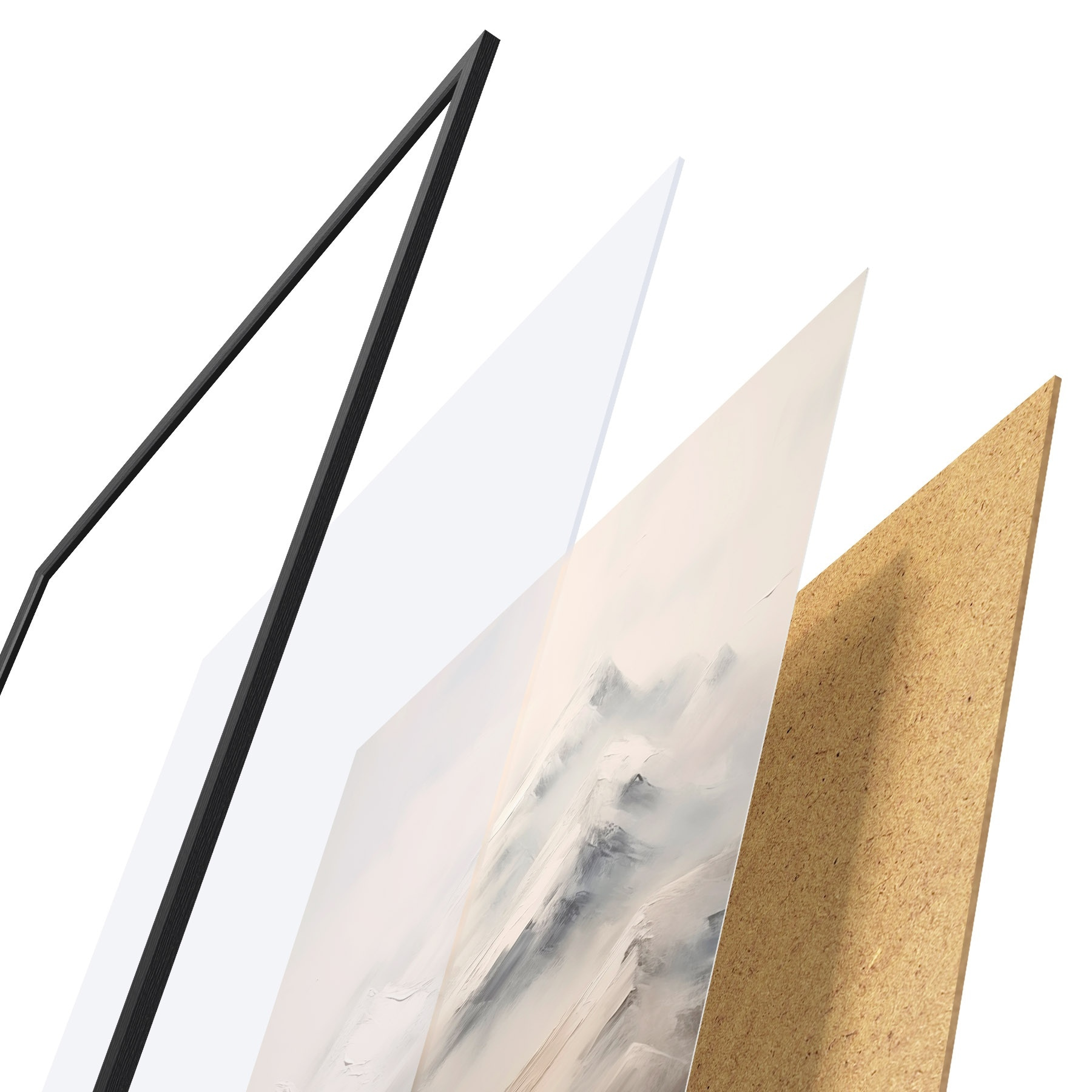 Plakāts sastāv no rāmja, pleksstikla, iespiestā attēla un skaidu plātnes pamatnes. Plakātu var uzreiz piekarināt pie sienas, pateicoties aizmugurē esošajiem stiprinājumiem.