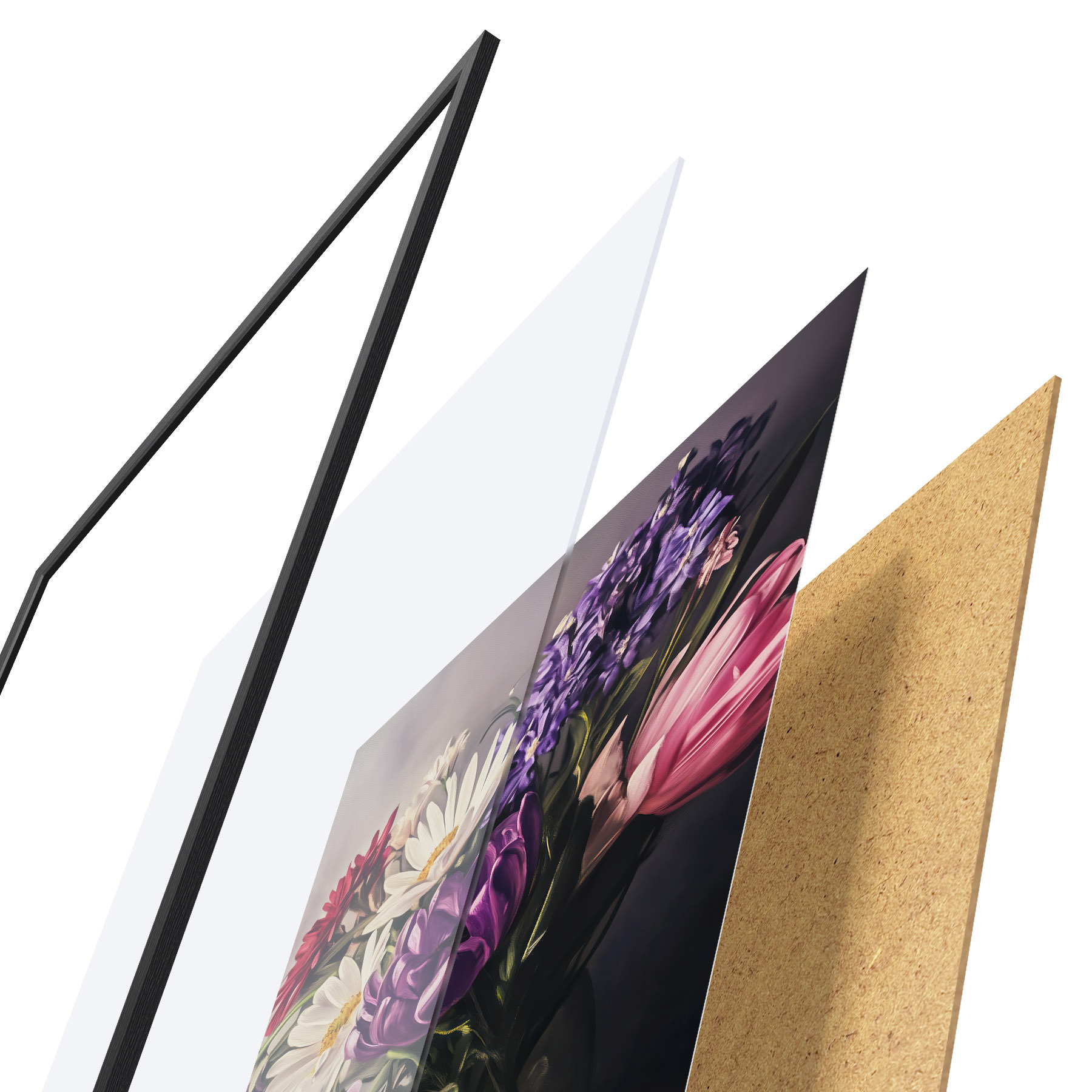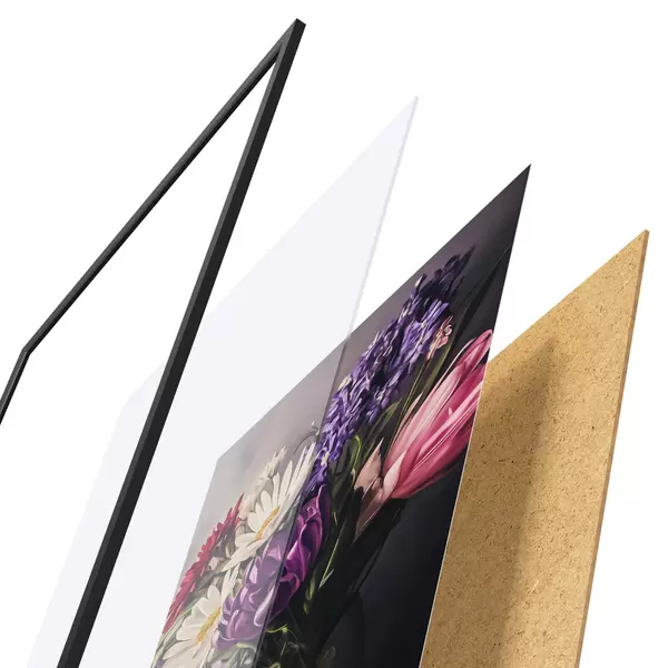 Plakāts sastāv no rāmja, pleksstikla, iespiestā attēla un skaidu plātnes pamatnes. Plakātu var uzreiz piekarināt pie sienas, pateicoties aizmugurē esošajiem stiprinājumiem.