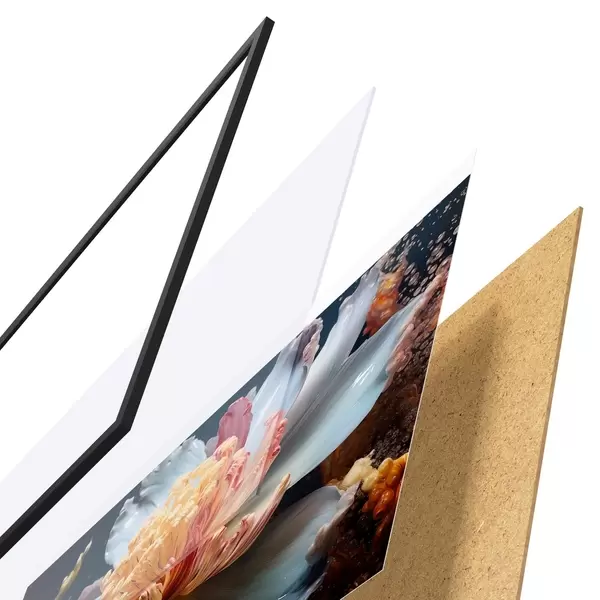 Plakāts sastāv no rāmja, pleksstikla, iespiestā attēla un skaidu plātnes pamatnes. Plakātu var uzreiz piekarināt pie sienas, pateicoties aizmugurē esošajiem stiprinājumiem.