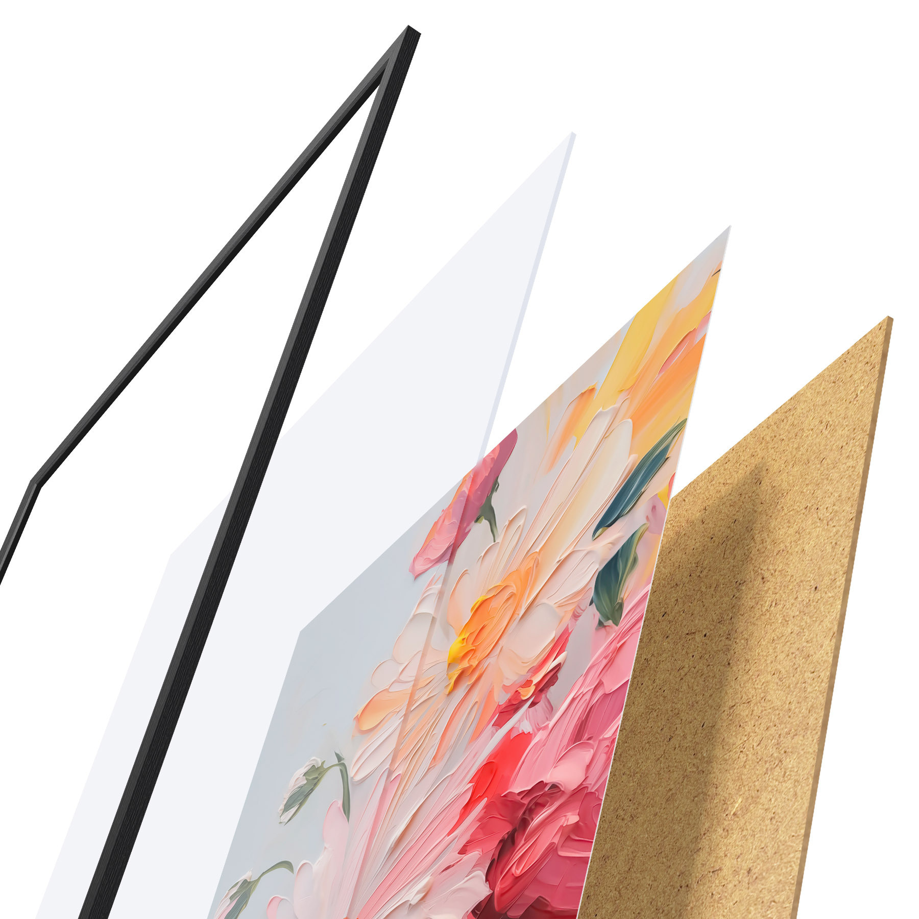 Plakāts sastāv no rāmja, pleksstikla, iespiestā attēla un skaidu plātnes pamatnes. Plakātu var uzreiz piekarināt pie sienas, pateicoties aizmugurē esošajiem stiprinājumiem.
