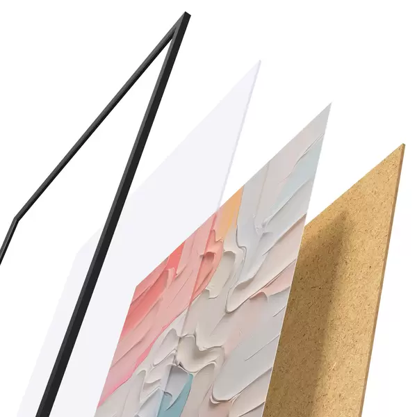 Plakāts sastāv no rāmja, pleksstikla, iespiestā attēla un skaidu plātnes pamatnes. Plakātu var uzreiz piekarināt pie sienas, pateicoties aizmugurē esošajiem stiprinājumiem.