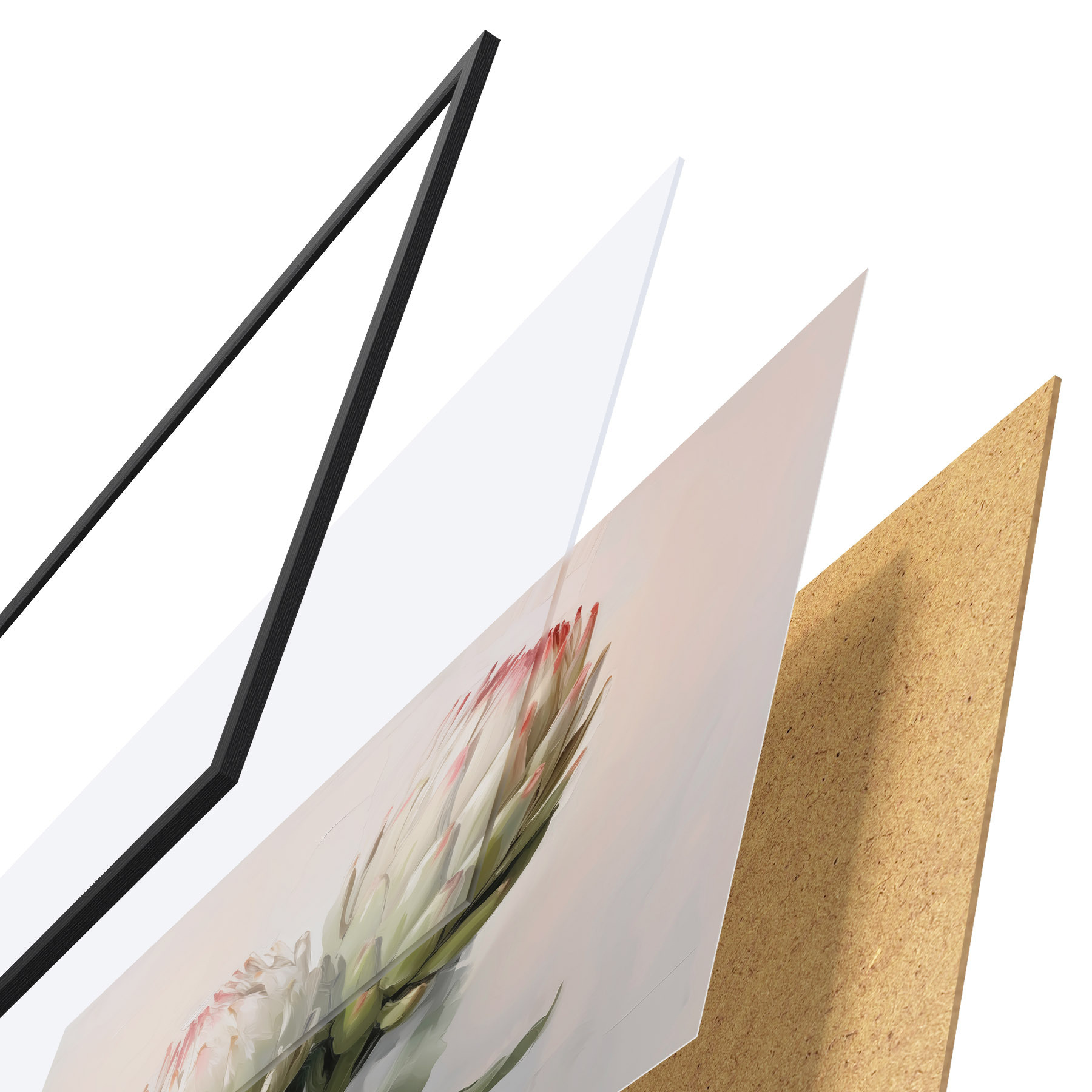 Plakāts sastāv no rāmja, pleksstikla, iespiestā attēla un skaidu plātnes pamatnes. Plakātu var uzreiz piekarināt pie sienas, pateicoties aizmugurē esošajiem stiprinājumiem.