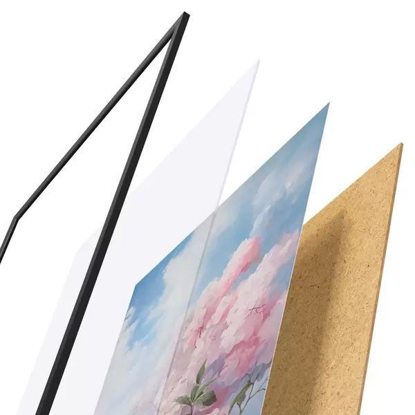 Plakāts sastāv no rāmja, pleksstikla, iespiestā attēla un skaidu plātnes pamatnes. Plakātu var uzreiz piekarināt pie sienas, pateicoties aizmugurē esošajiem stiprinājumiem.