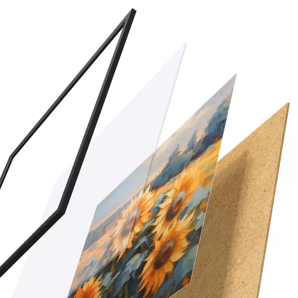 Plakāts sastāv no rāmja, pleksstikla, iespiestā attēla un skaidu plātnes pamatnes. Plakātu var uzreiz piekarināt pie sienas, pateicoties aizmugurē esošajiem stiprinājumiem.