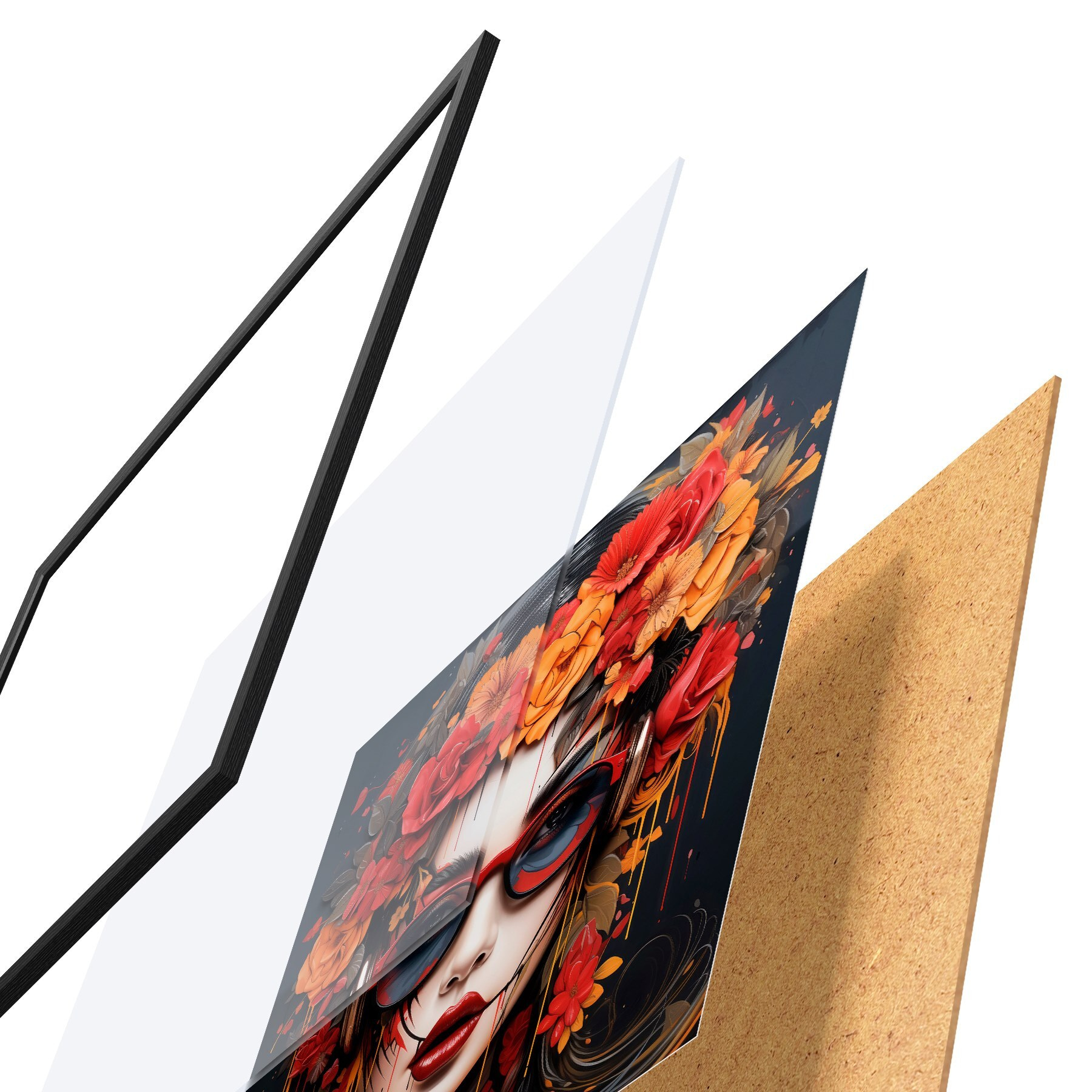 Plakāts sastāv no rāmja, pleksstikla, iespiestā attēla un skaidu plātnes pamatnes. Plakātu var uzreiz piekarināt pie sienas, pateicoties aizmugurē esošajiem stiprinājumiem.