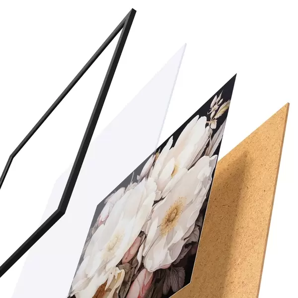 Plakāts sastāv no rāmja, pleksstikla, iespiestā attēla un skaidu plātnes pamatnes. Plakātu var uzreiz piekarināt pie sienas, pateicoties aizmugurē esošajiem stiprinājumiem.