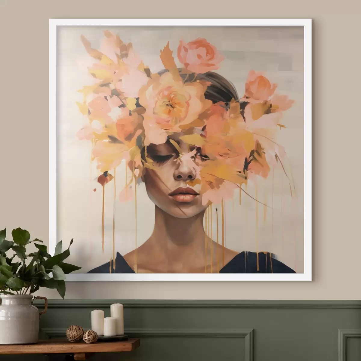 Plakāts Meitene ar krāsu uz sejas un ziediem uz galvas f43382