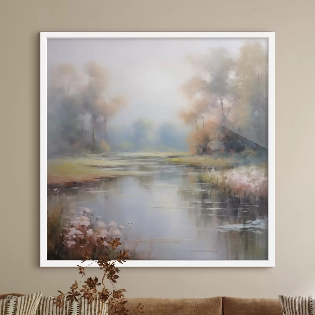 Plakāts Meža daba ar upi, ziediem un kokiem Nr f43386