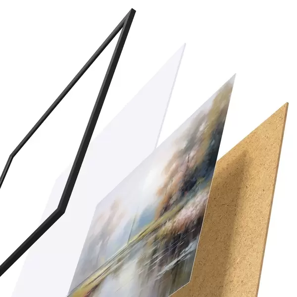 Plakāts sastāv no rāmja, pleksstikla, iespiestā attēla un skaidu plātnes pamatnes. Plakātu var uzreiz piekarināt pie sienas, pateicoties aizmugurē esošajiem stiprinājumiem.