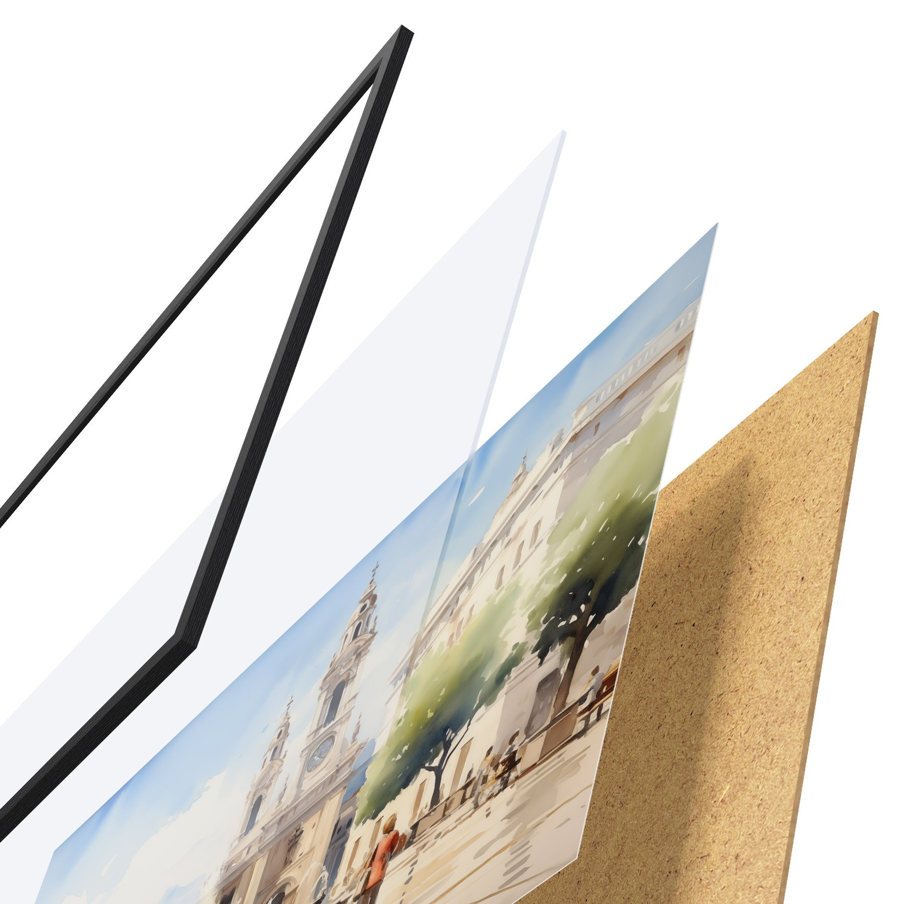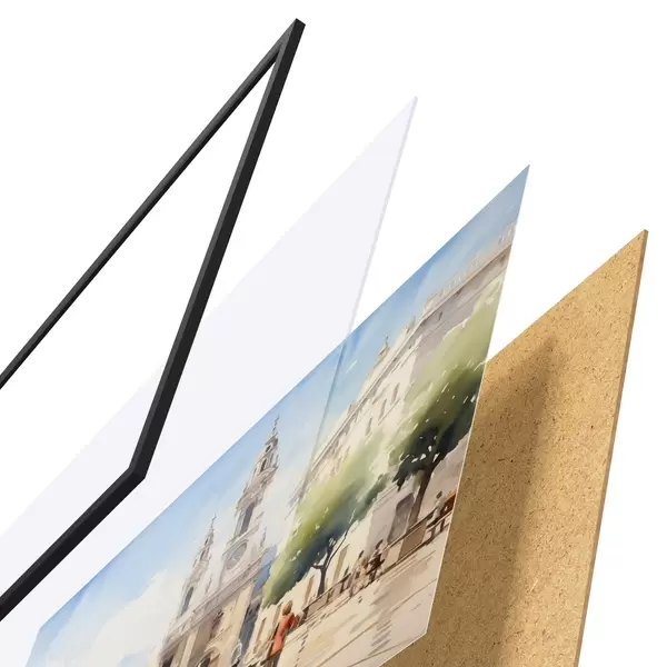 Plakāts sastāv no rāmja, pleksstikla, iespiestā attēla un skaidu plātnes pamatnes. Plakātu var uzreiz piekarināt pie sienas, pateicoties aizmugurē esošajiem stiprinājumiem.