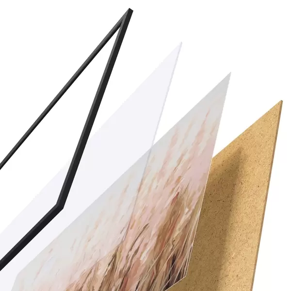 Plakāts sastāv no rāmja, pleksstikla, iespiestā attēla un skaidu plātnes pamatnes. Plakātu var uzreiz piekarināt pie sienas, pateicoties aizmugurē esošajiem stiprinājumiem.