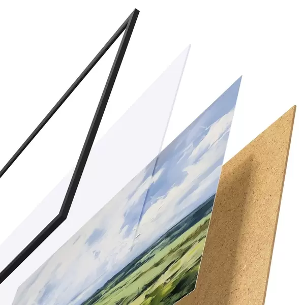 Plakāts sastāv no rāmja, pleksstikla, iespiestā attēla un skaidu plātnes pamatnes. Plakātu var uzreiz piekarināt pie sienas, pateicoties aizmugurē esošajiem stiprinājumiem.