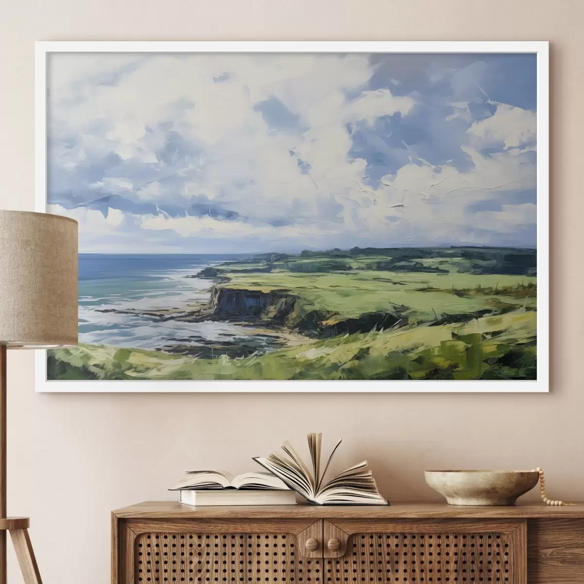 SākumlapaPlakātu katalogsPlakāti daba jūraPlakāts Zaļš lauks ar klinti piekrastē, zila jūra ar viļņiem, mākoņainas debesis, minimālisma mūsdienu eļļas glezna imitācija Nr f43406
