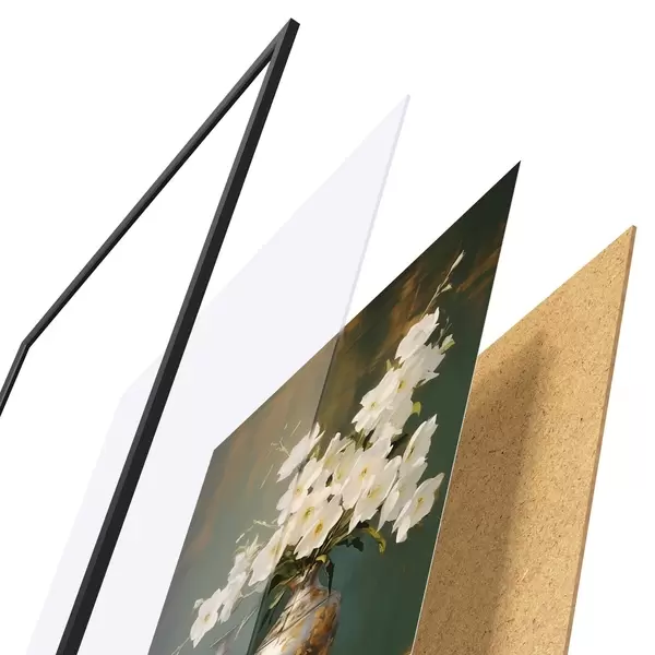 Plakāts sastāv no rāmja, pleksstikla, iespiestā attēla un skaidu plātnes pamatnes. Plakātu var uzreiz piekarināt pie sienas, pateicoties aizmugurē esošajiem stiprinājumiem.