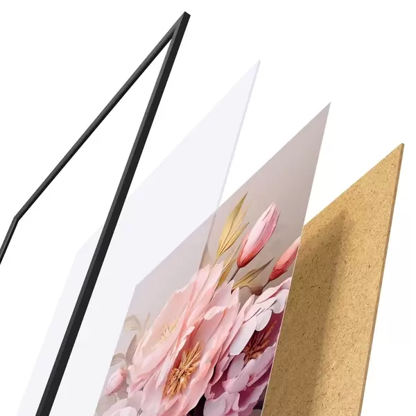 Plakāts sastāv no rāmja, pleksstikla, iespiestā attēla un skaidu plātnes pamatnes. Plakātu var uzreiz piekarināt pie sienas, pateicoties aizmugurē esošajiem stiprinājumiem.