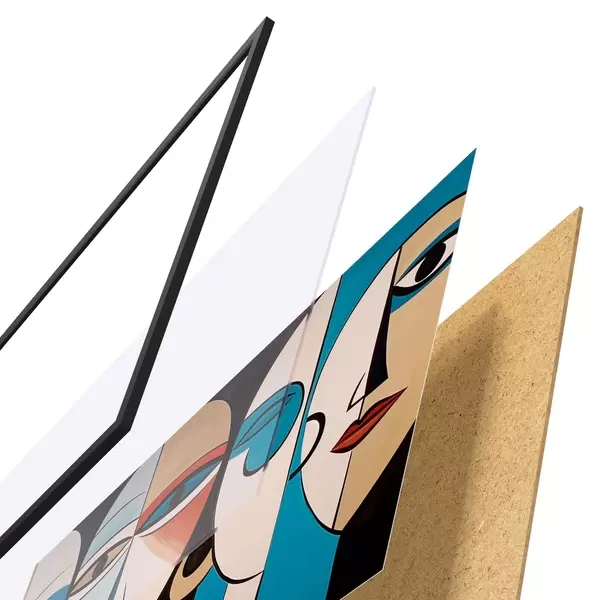 Plakāts sastāv no rāmja, pleksstikla, iespiestā attēla un skaidu plātnes pamatnes. Plakātu var uzreiz piekarināt pie sienas, pateicoties aizmugurē esošajiem stiprinājumiem.