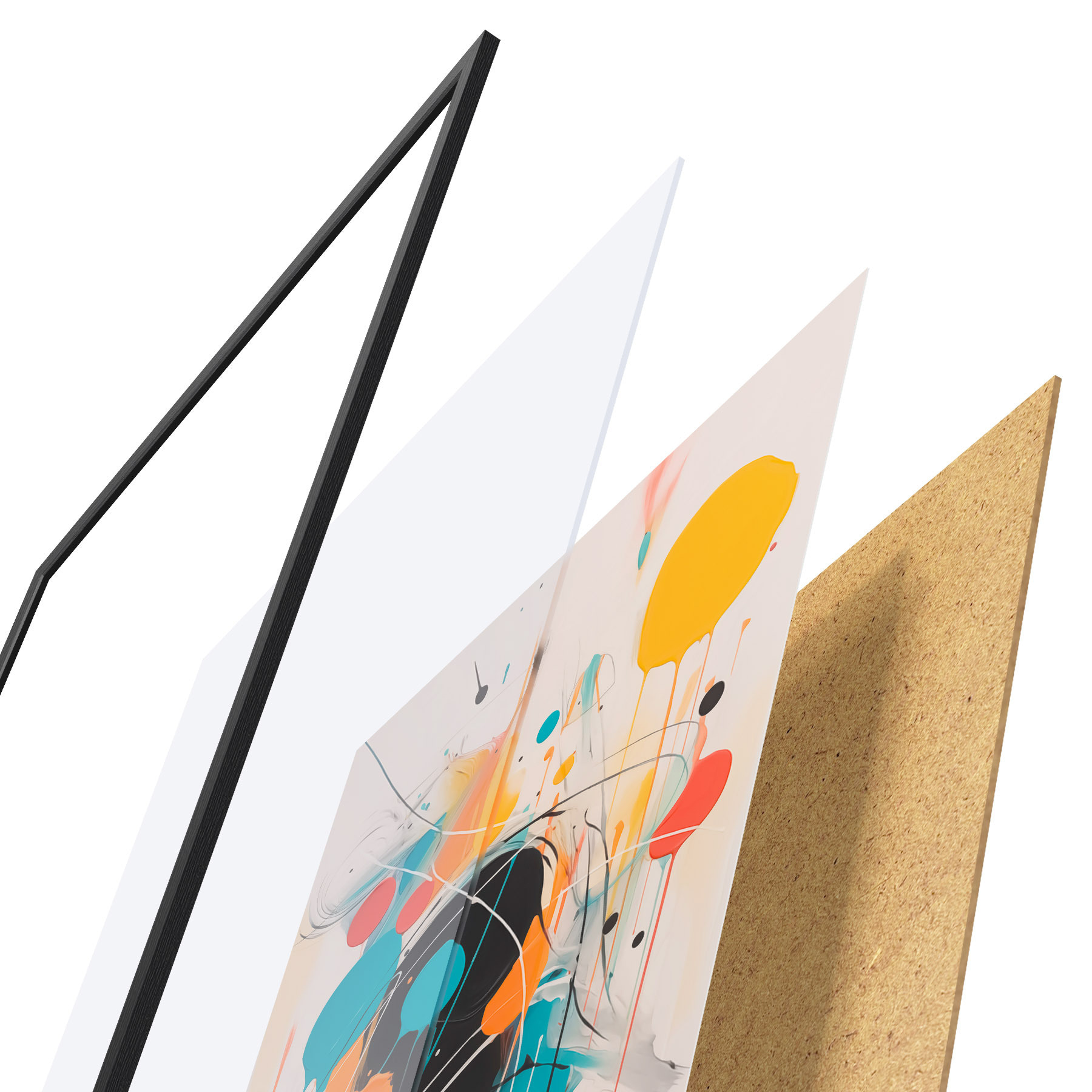 Plakāts sastāv no rāmja, pleksstikla, iespiestā attēla un skaidu plātnes pamatnes. Plakātu var uzreiz piekarināt pie sienas, pateicoties aizmugurē esošajiem stiprinājumiem.