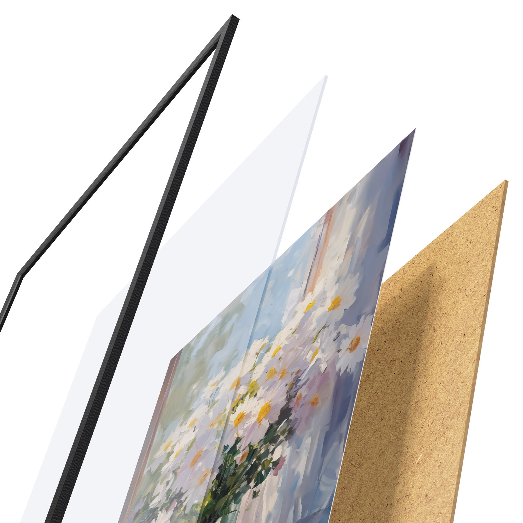 Plakāts sastāv no rāmja, pleksstikla, iespiestā attēla un skaidu plātnes pamatnes. Plakātu var uzreiz piekarināt pie sienas, pateicoties aizmugurē esošajiem stiprinājumiem.