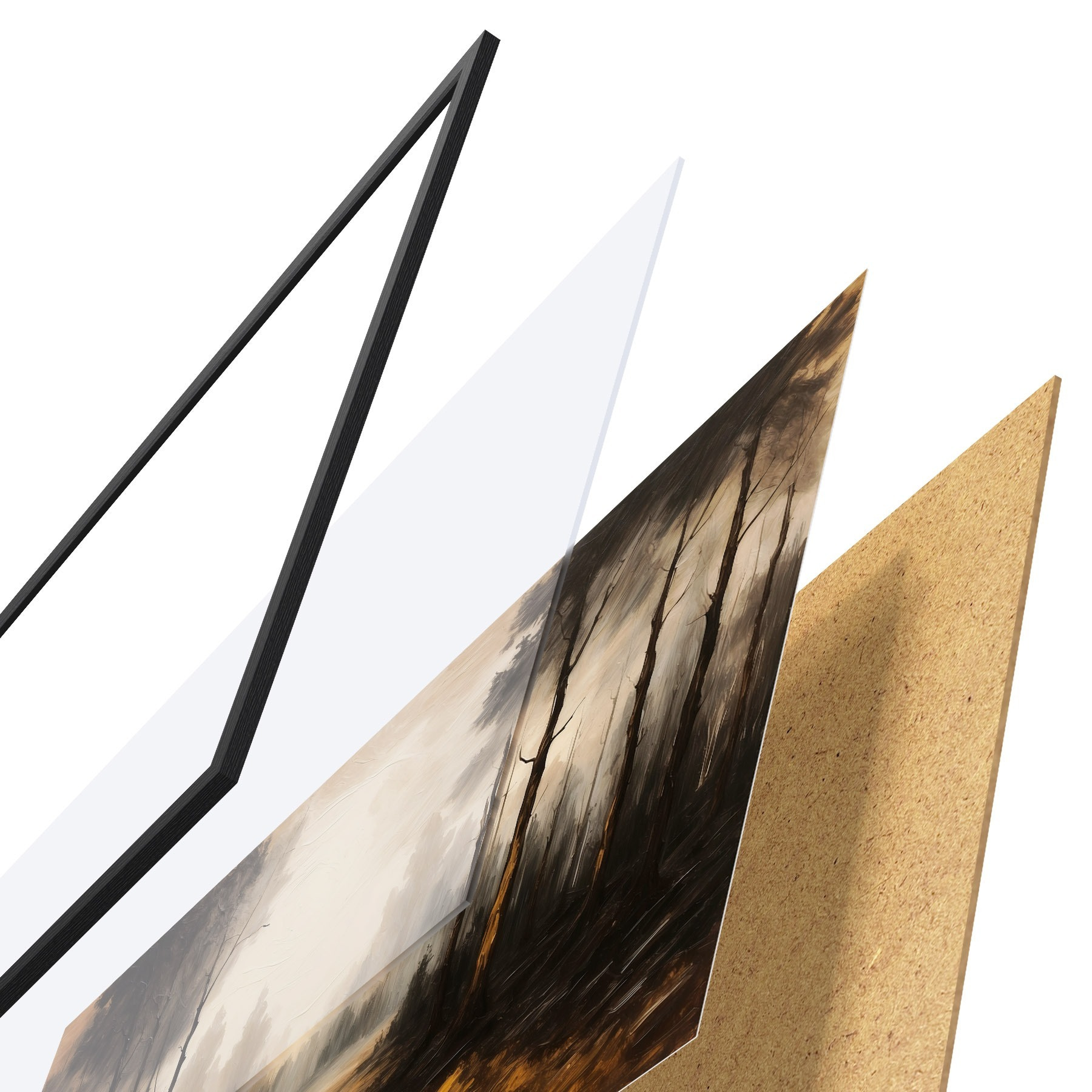 Plakāts sastāv no rāmja, pleksstikla, iespiestā attēla un skaidu plātnes pamatnes. Plakātu var uzreiz piekarināt pie sienas, pateicoties aizmugurē esošajiem stiprinājumiem.