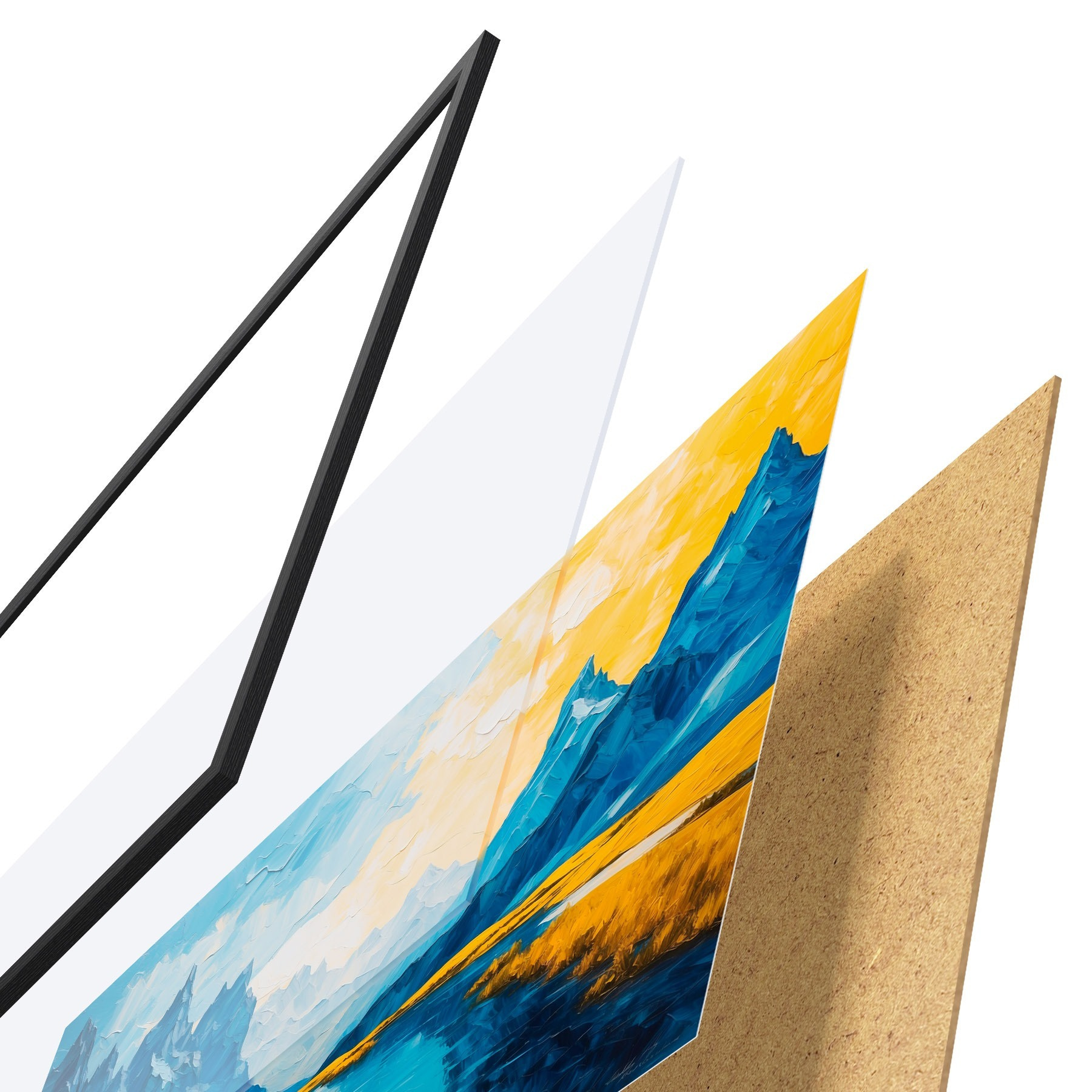 Plakāts sastāv no rāmja, pleksstikla, iespiestā attēla un skaidu plātnes pamatnes. Plakātu var uzreiz piekarināt pie sienas, pateicoties aizmugurē esošajiem stiprinājumiem.