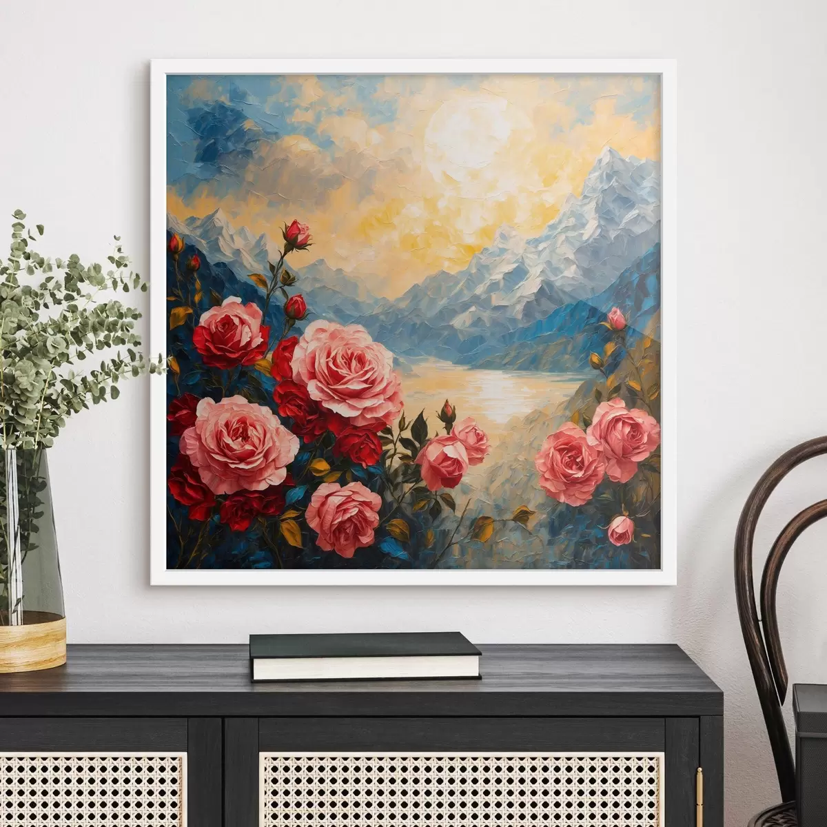 Plakāts Rozes uz kalnu fona eļļas glezna stilā f43457