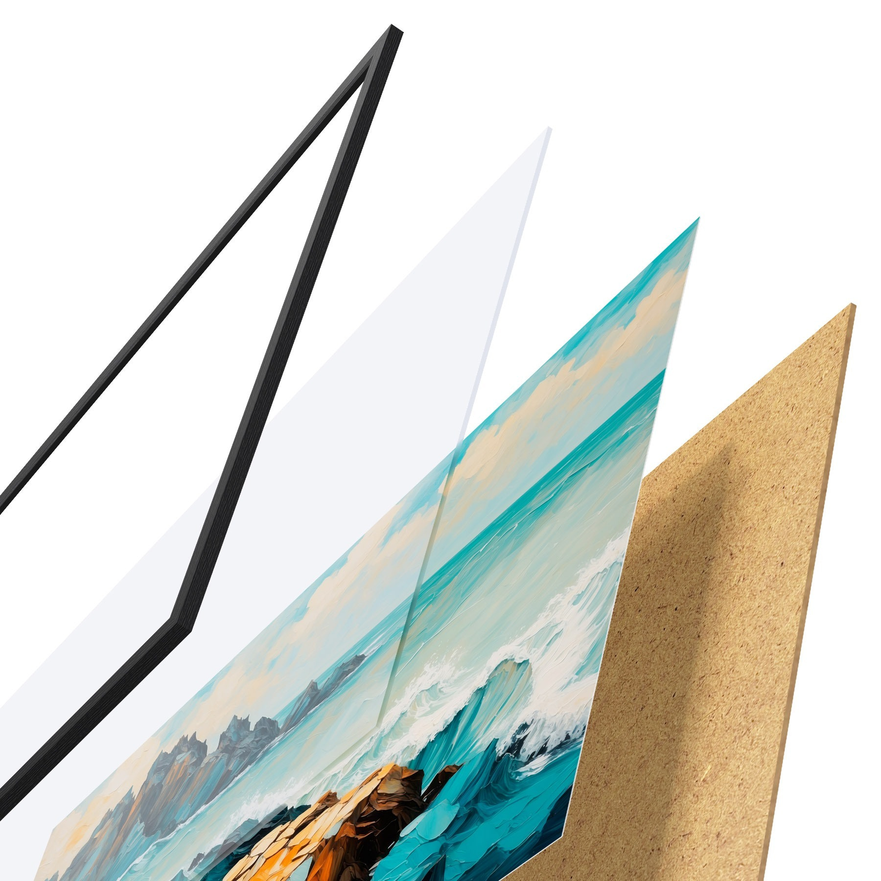 Plakāts sastāv no rāmja, pleksstikla, iespiestā attēla un skaidu plātnes pamatnes. Plakātu var uzreiz piekarināt pie sienas, pateicoties aizmugurē esošajiem stiprinājumiem.