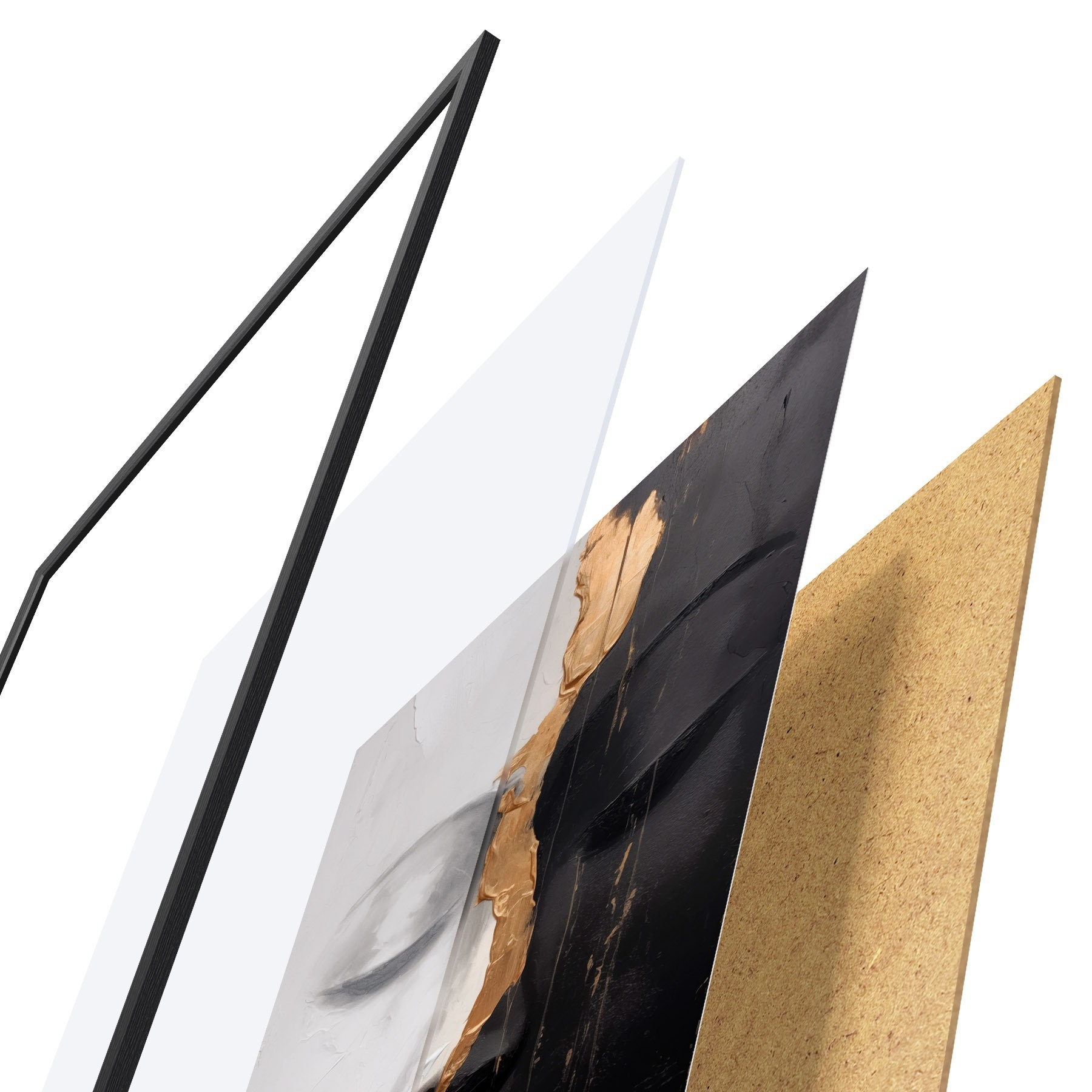Plakāts sastāv no rāmja, pleksstikla, iespiestā attēla un skaidu plātnes pamatnes. Plakātu var uzreiz piekarināt pie sienas, pateicoties aizmugurē esošajiem stiprinājumiem.