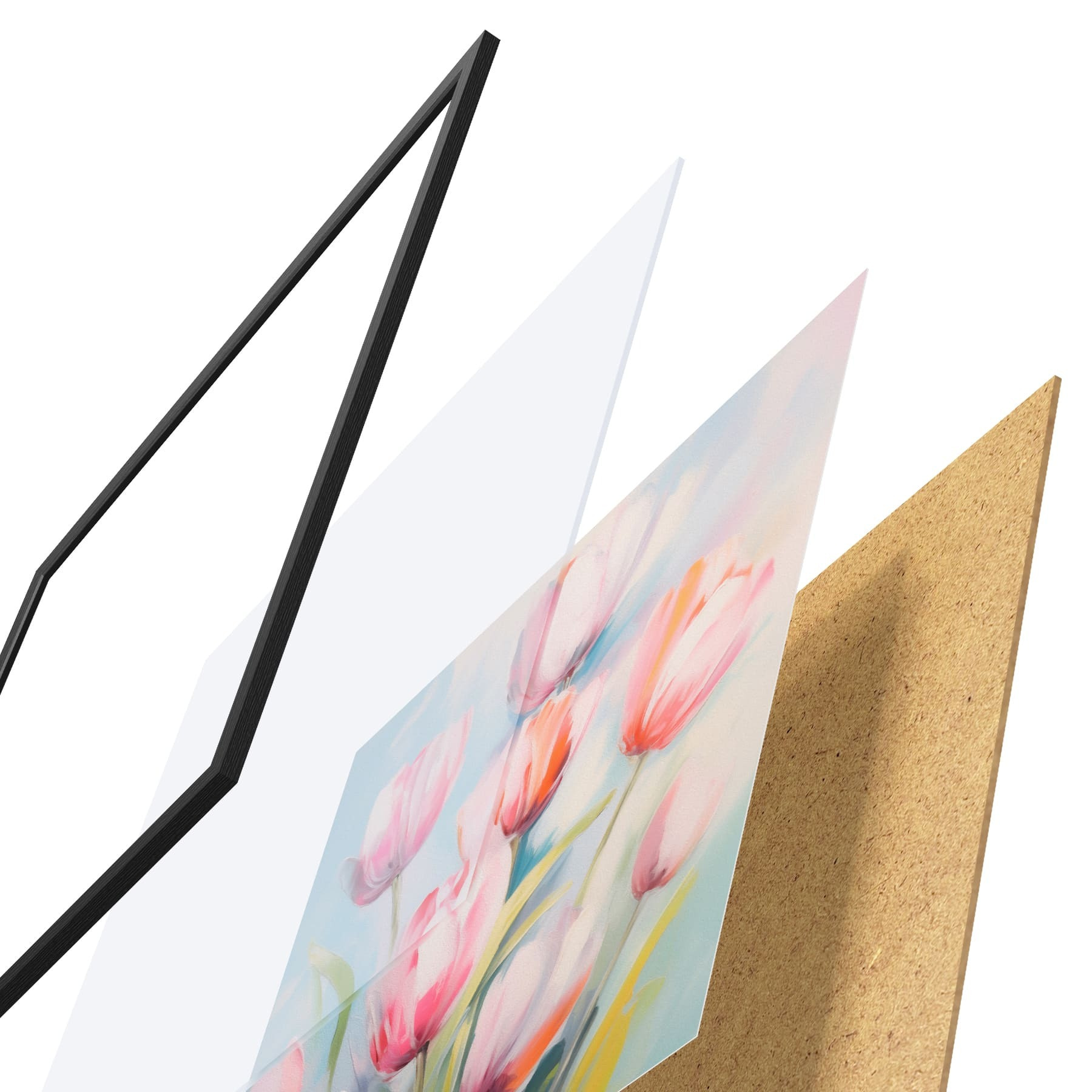 Plakāts sastāv no rāmja, pleksstikla, iespiestā attēla un skaidu plātnes pamatnes. Plakātu var uzreiz piekarināt pie sienas, pateicoties aizmugurē esošajiem stiprinājumiem.