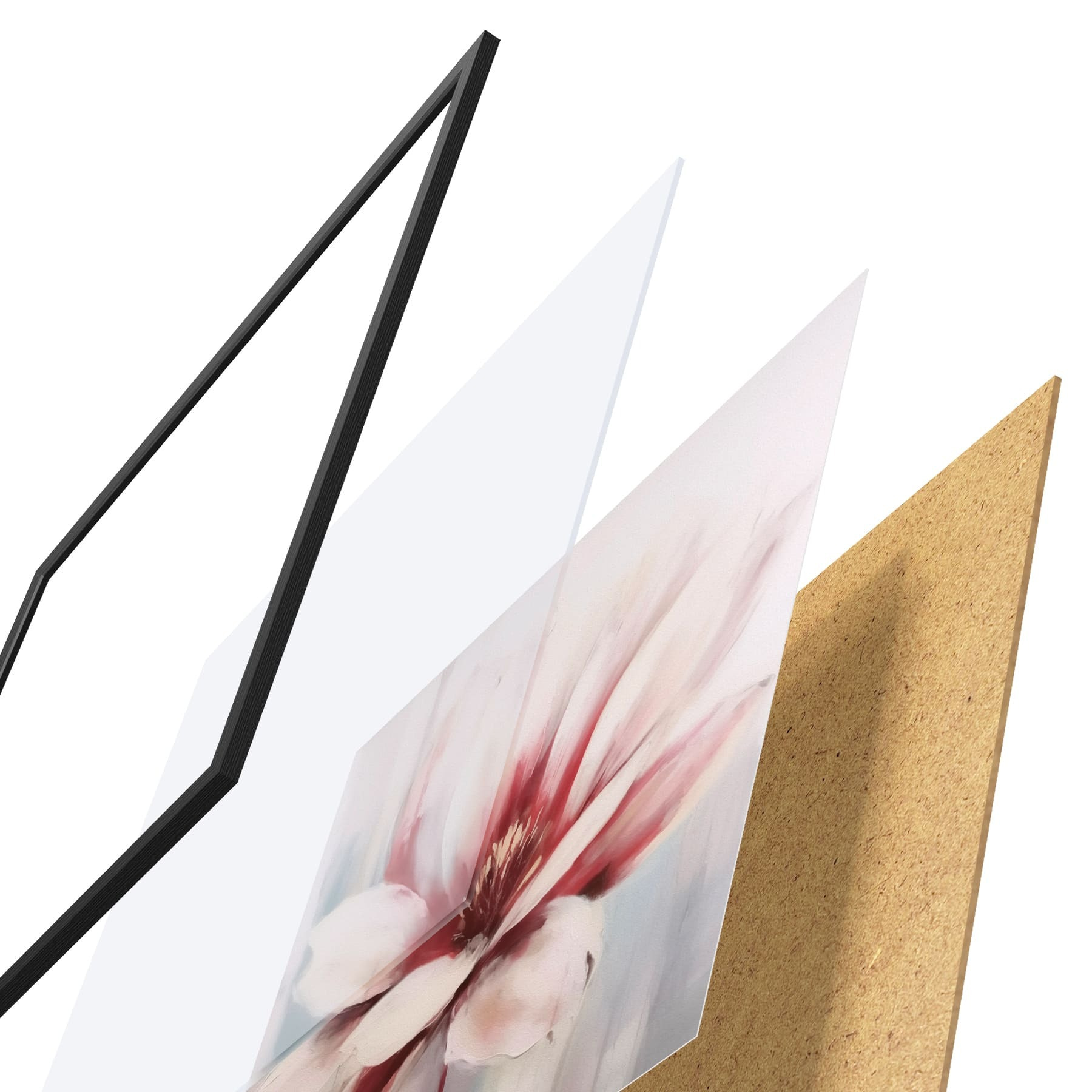 Plakāts sastāv no rāmja, pleksstikla, iespiestā attēla un skaidu plātnes pamatnes. Plakātu var uzreiz piekarināt pie sienas, pateicoties aizmugurē esošajiem stiprinājumiem.