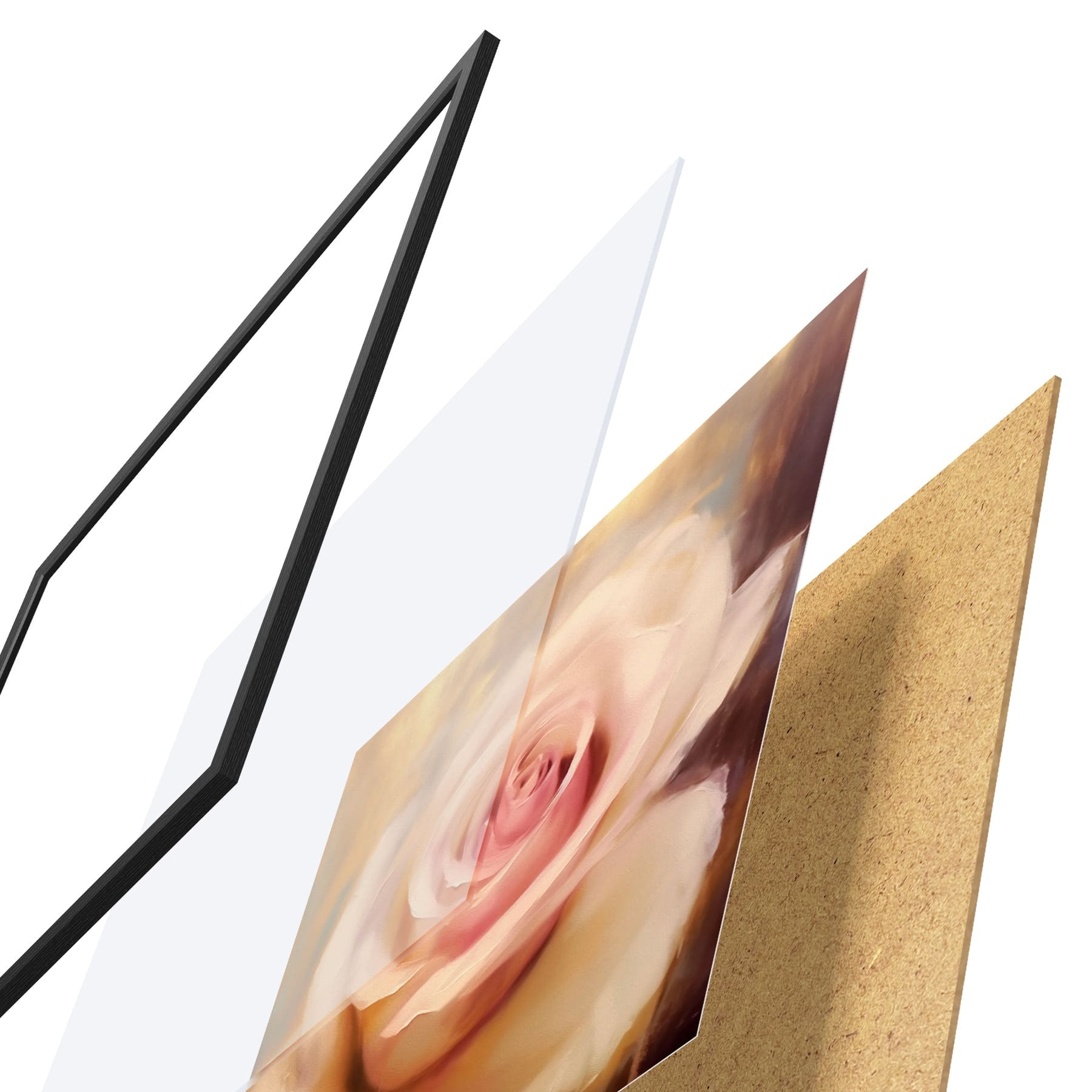 Plakāts sastāv no rāmja, pleksstikla, iespiestā attēla un skaidu plātnes pamatnes. Plakātu var uzreiz piekarināt pie sienas, pateicoties aizmugurē esošajiem stiprinājumiem.