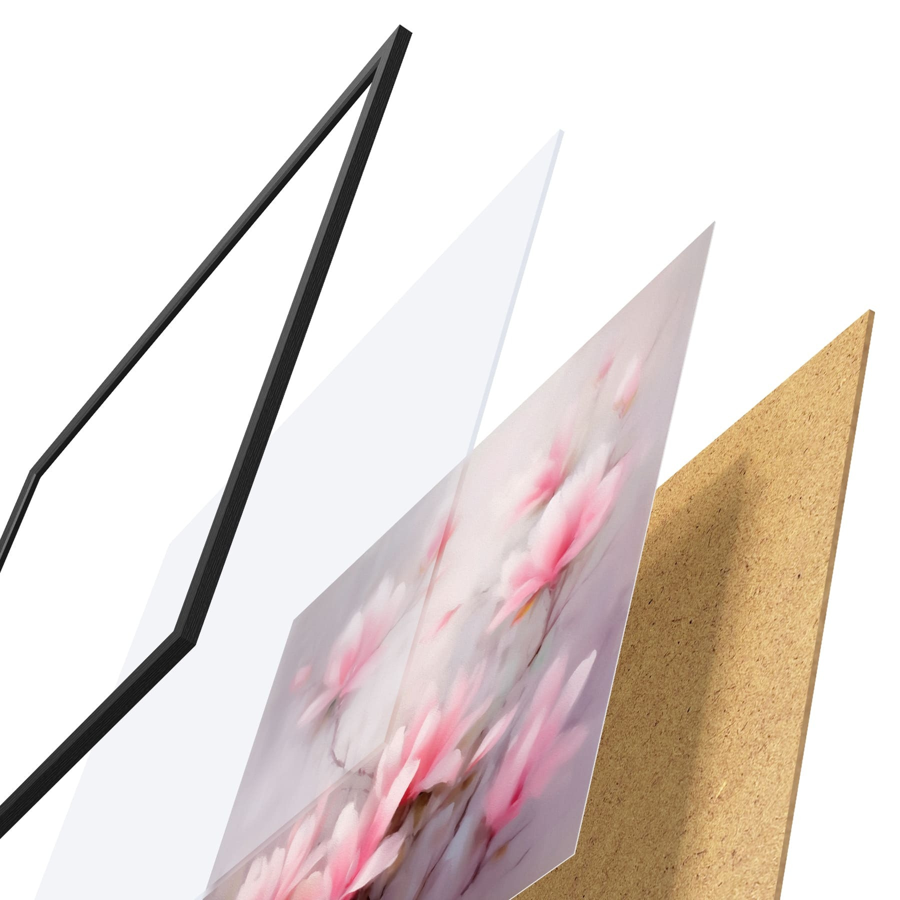 Plakāts sastāv no rāmja, pleksstikla, iespiestā attēla un skaidu plātnes pamatnes. Plakātu var uzreiz piekarināt pie sienas, pateicoties aizmugurē esošajiem stiprinājumiem.