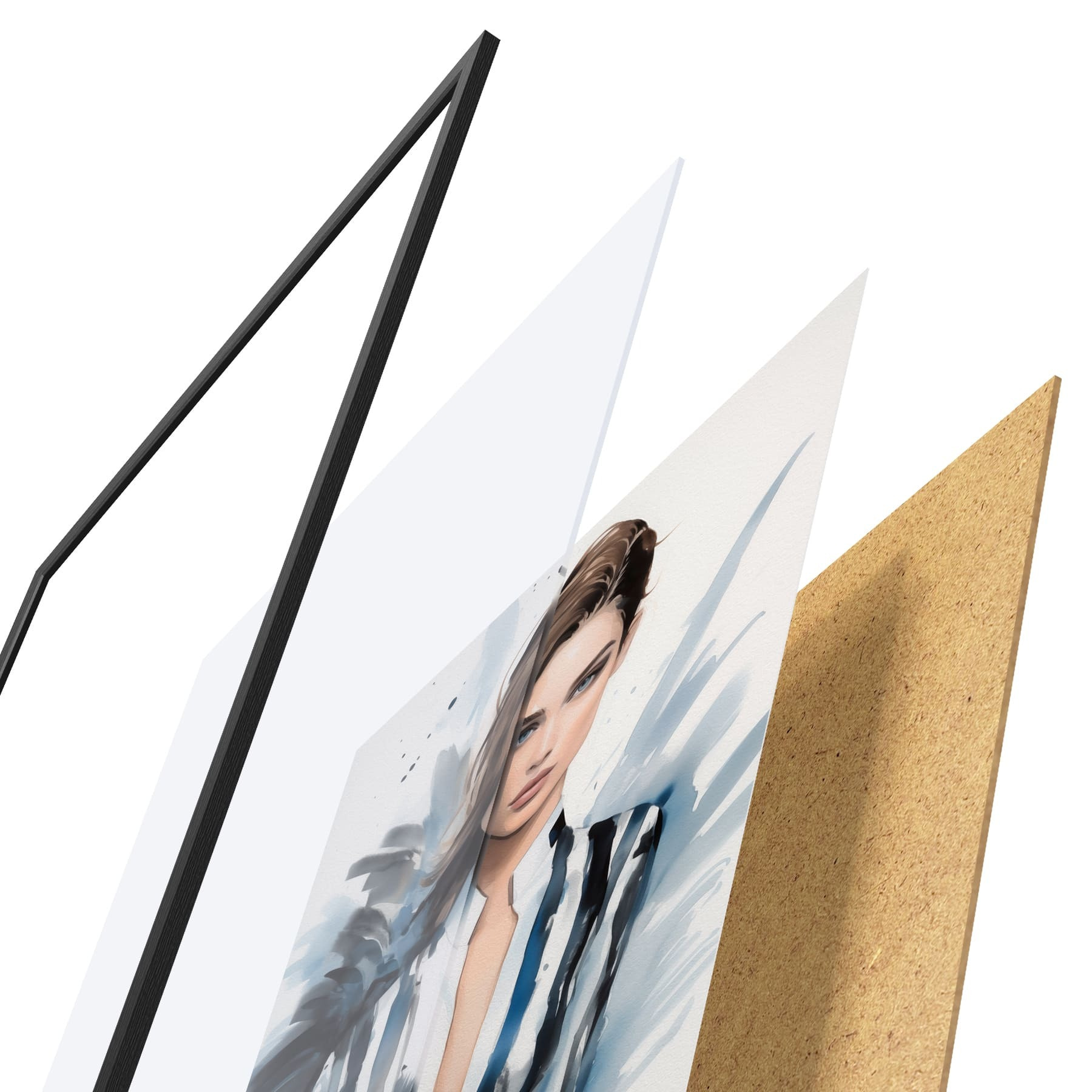 Plakāts sastāv no rāmja, pleksstikla, iespiestā attēla un skaidu plātnes pamatnes. Plakātu var uzreiz piekarināt pie sienas, pateicoties aizmugurē esošajiem stiprinājumiem.