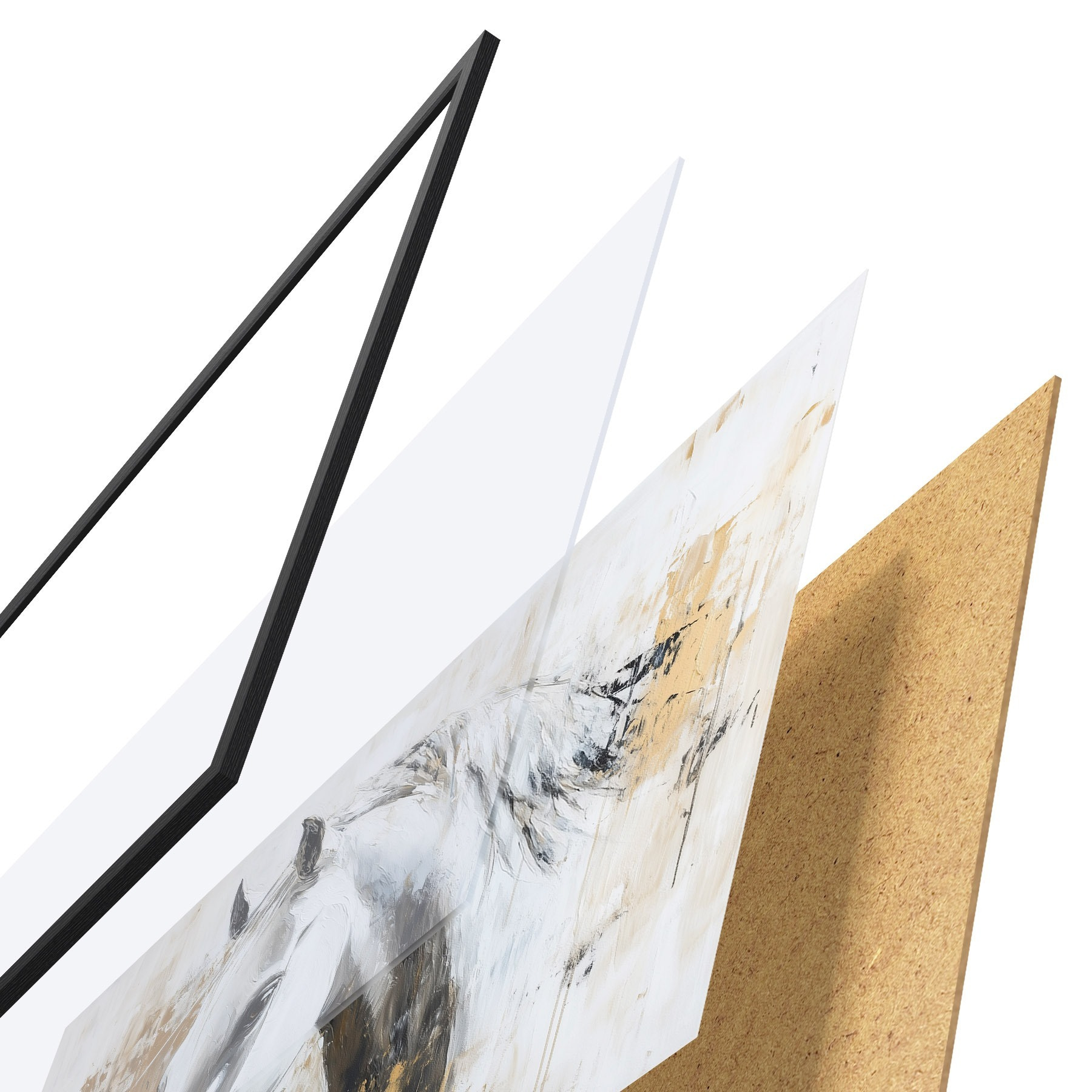 Plakāts Balts zirgs, eļļas stila zīmējums, dzīvnieki, spilgti otas triepieni Nr f43497