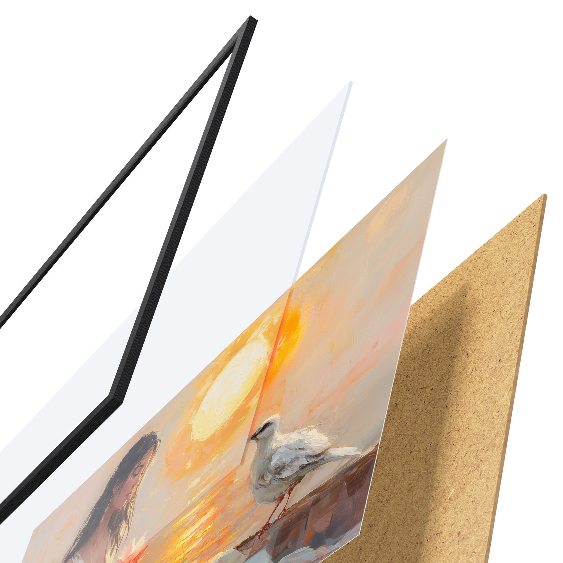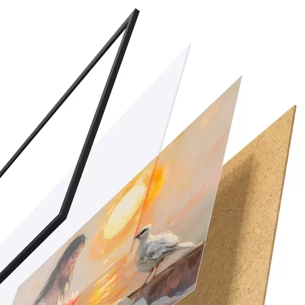 Plakāts sastāv no rāmja, pleksstikla, iespiestā attēla un skaidu plātnes pamatnes. Plakātu var uzreiz piekarināt pie sienas, pateicoties aizmugurē esošajiem stiprinājumiem.