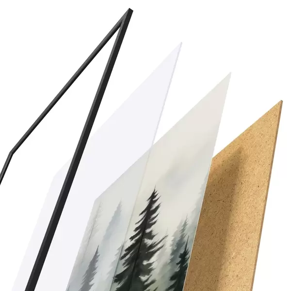 Plakāts sastāv no rāmja, pleksstikla, iespiestā attēla un skaidu plātnes pamatnes. Plakātu var uzreiz piekarināt pie sienas, pateicoties aizmugurē esošajiem stiprinājumiem.