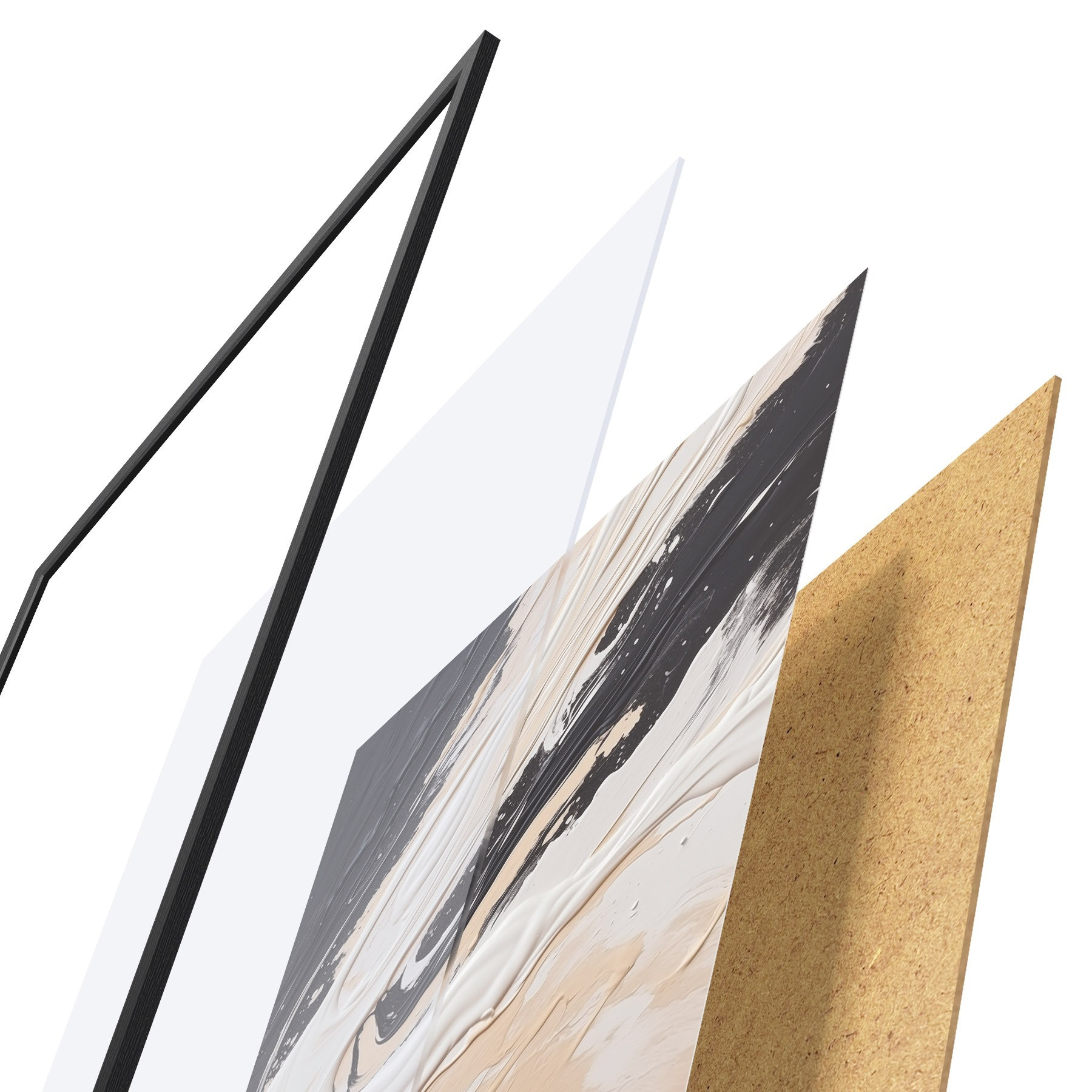 Plakāts sastāv no rāmja, pleksstikla, iespiestā attēla un skaidu plātnes pamatnes. Plakātu var uzreiz piekarināt pie sienas, pateicoties aizmugurē esošajiem stiprinājumiem.