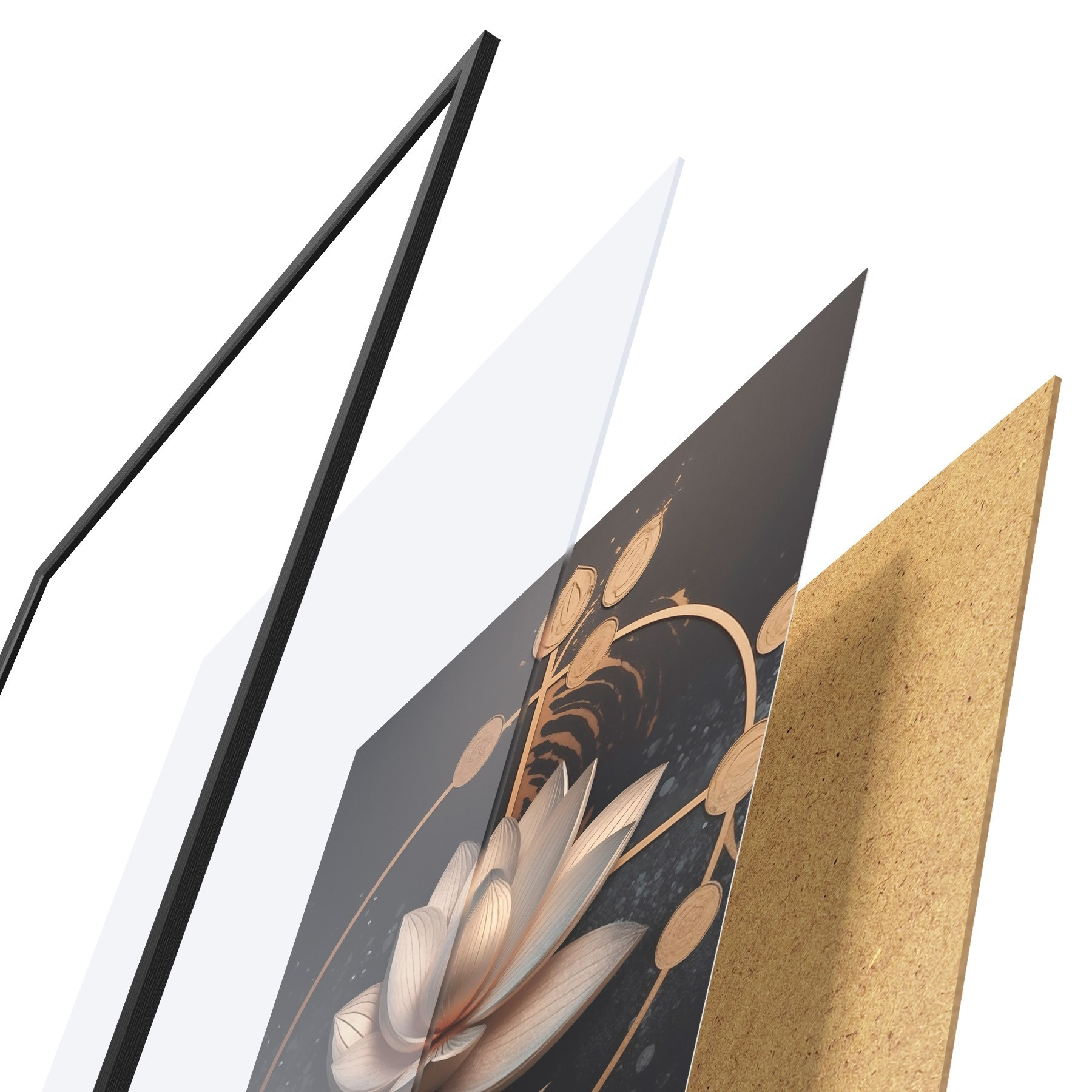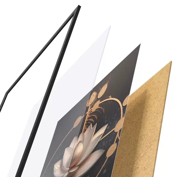 Plakāts sastāv no rāmja, pleksstikla, iespiestā attēla un skaidu plātnes pamatnes. Plakātu var uzreiz piekarināt pie sienas, pateicoties aizmugurē esošajiem stiprinājumiem.