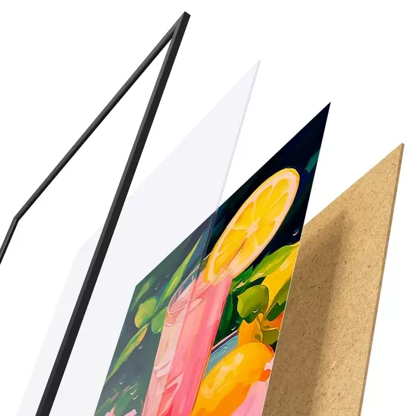 Plakāts sastāv no rāmja, pleksstikla, iespiestā attēla un skaidu plātnes pamatnes. Plakātu var uzreiz piekarināt pie sienas, pateicoties aizmugurē esošajiem stiprinājumiem.