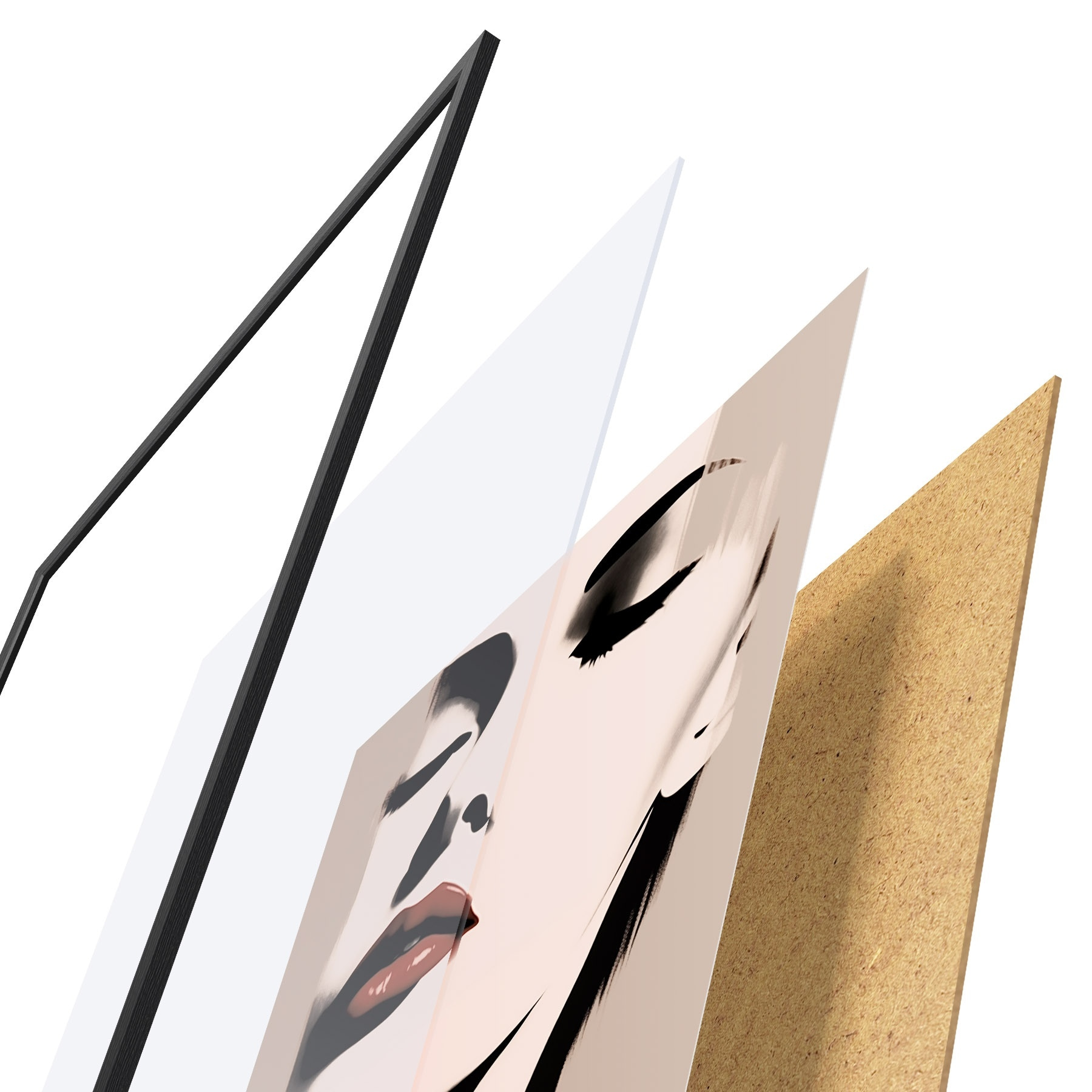 Plakāts sastāv no rāmja, pleksstikla, iespiestā attēla un skaidu plātnes pamatnes. Plakātu var uzreiz piekarināt pie sienas, pateicoties aizmugurē esošajiem stiprinājumiem.