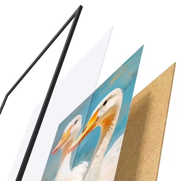 Plakāts sastāv no rāmja, pleksstikla, iespiestā attēla un skaidu plātnes pamatnes. Plakātu var uzreiz piekarināt pie sienas, pateicoties aizmugurē esošajiem stiprinājumiem.