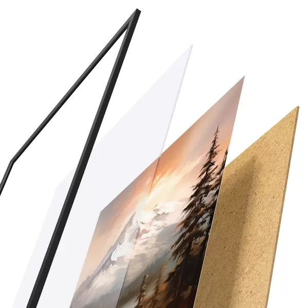 Plakāts sastāv no rāmja, pleksstikla, iespiestā attēla un skaidu plātnes pamatnes. Plakātu var uzreiz piekarināt pie sienas, pateicoties aizmugurē esošajiem stiprinājumiem.