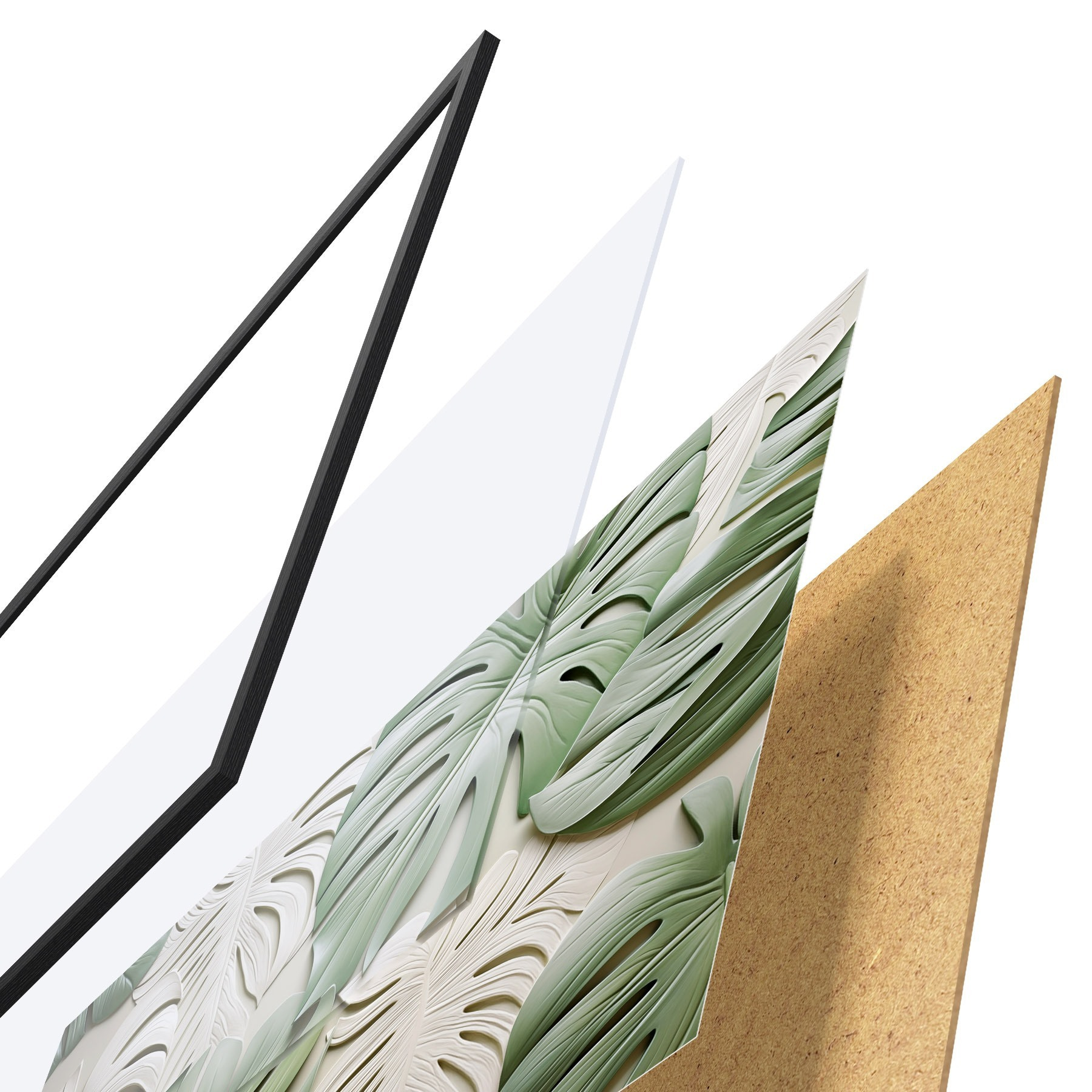 Plakāts sastāv no rāmja, pleksstikla, iespiestā attēla un skaidu plātnes pamatnes. Plakātu var uzreiz piekarināt pie sienas, pateicoties aizmugurē esošajiem stiprinājumiem.