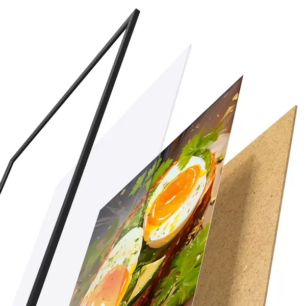 Plakāts sastāv no rāmja, pleksstikla, iespiestā attēla un skaidu plātnes pamatnes. Plakātu var uzreiz piekarināt pie sienas, pateicoties aizmugurē esošajiem stiprinājumiem.