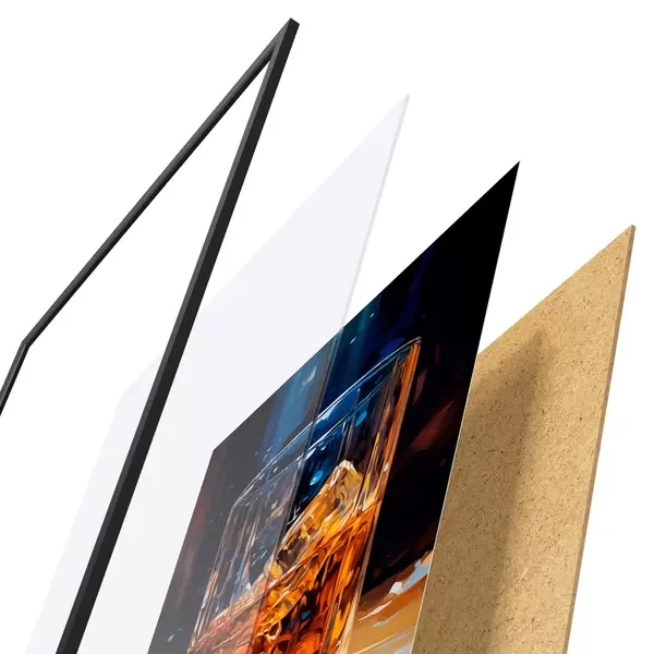 Plakāts sastāv no rāmja, pleksstikla, iespiestā attēla un skaidu plātnes pamatnes. Plakātu var uzreiz piekarināt pie sienas, pateicoties aizmugurē esošajiem stiprinājumiem.