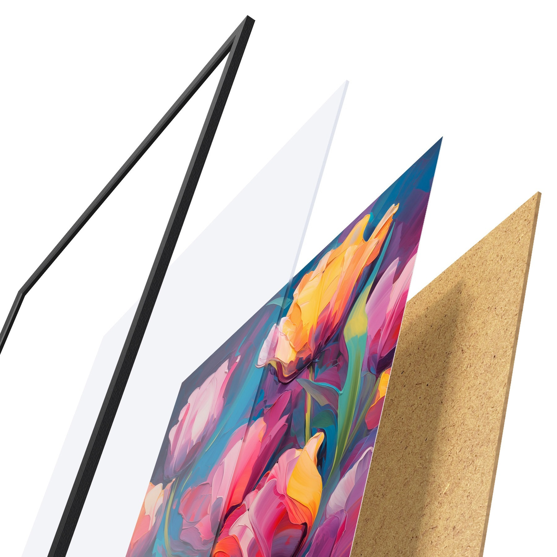 Plakāts sastāv no rāmja, pleksstikla, iespiestā attēla un skaidu plātnes pamatnes. Plakātu var uzreiz piekarināt pie sienas, pateicoties aizmugurē esošajiem stiprinājumiem.